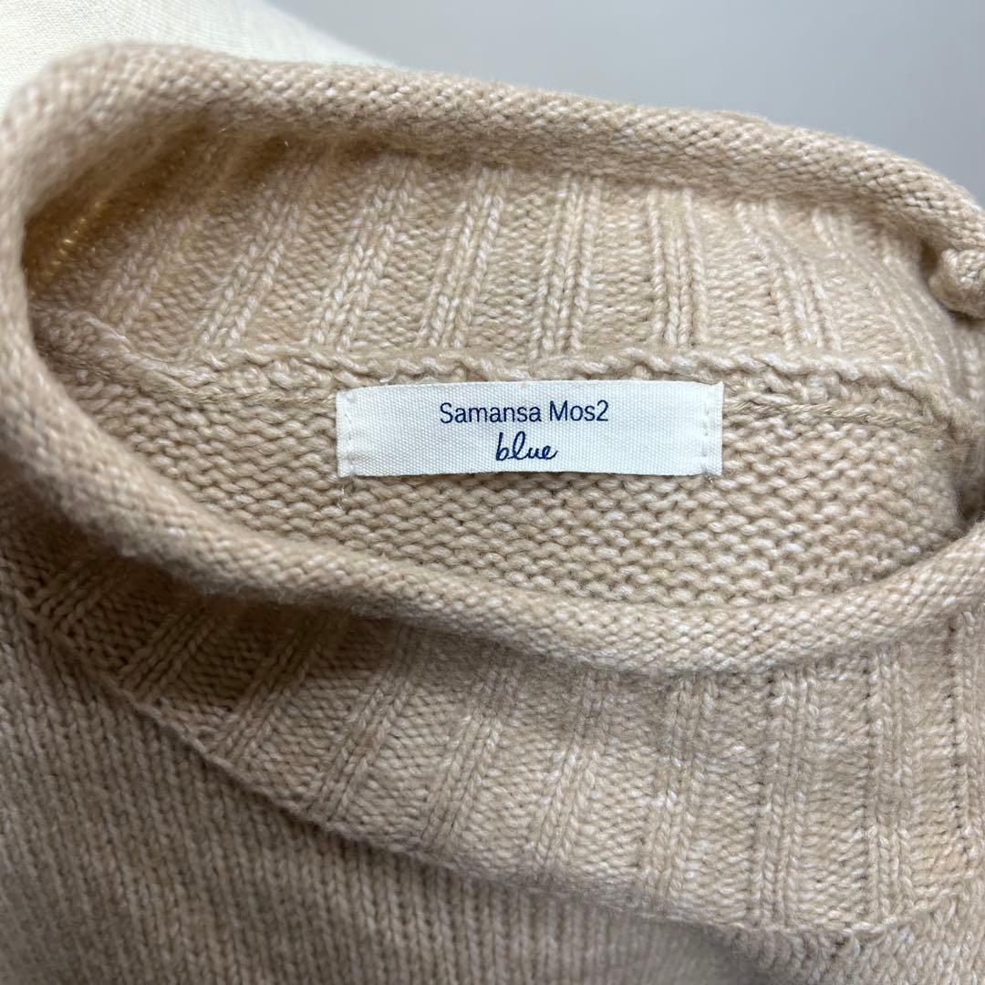 Samansa Mos2 blue ベージュ ハイネック ニット 長袖