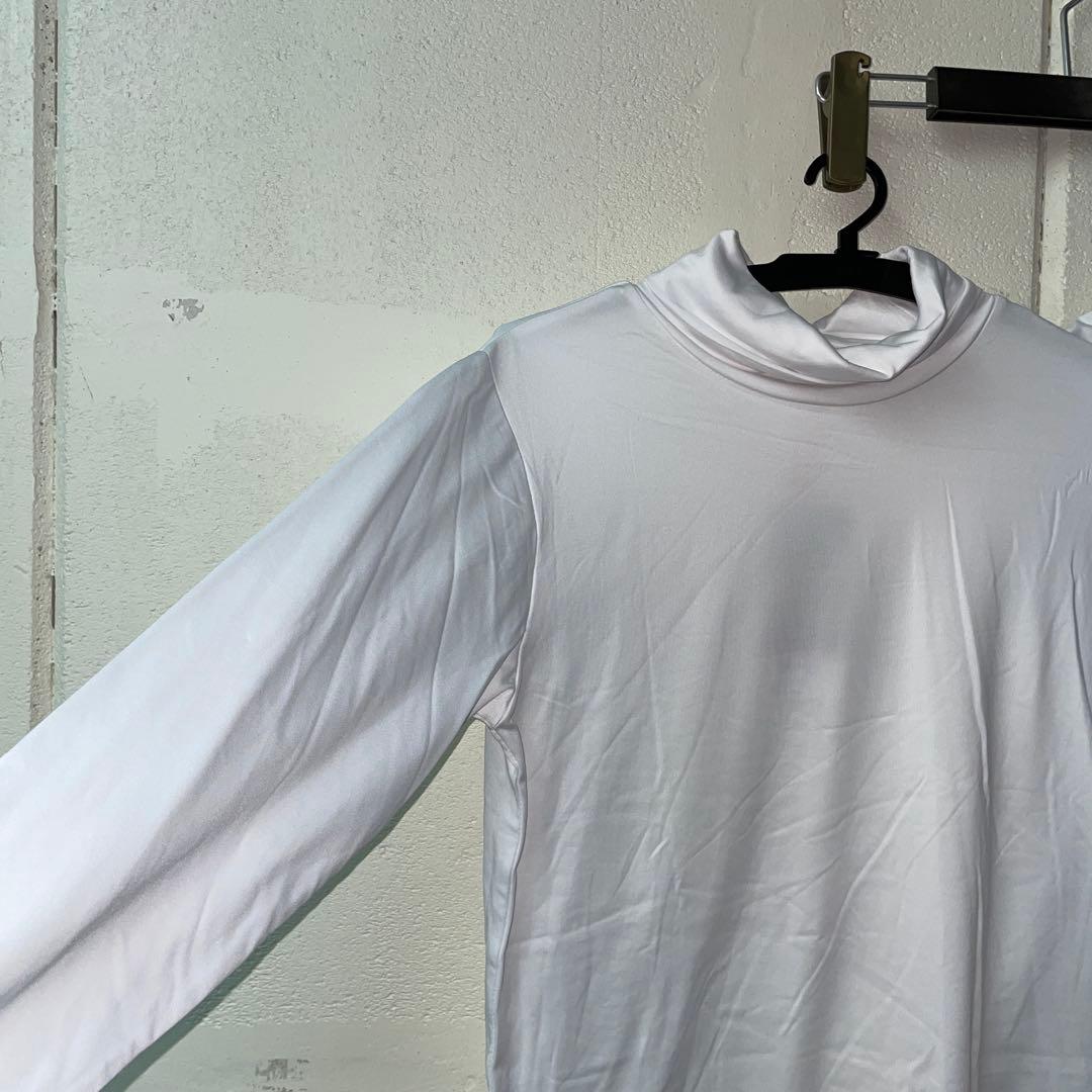 訳ありLサイズメンズストレッチ裏起毛暖かタートルインナー白2枚セット