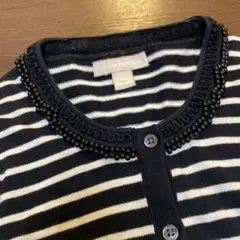 BANANA REPUBLIC カーディガン 襟元にピーズ 白黒ボーダー柄M