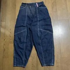 美品 PERSON'S ダークブルー ワイドパンツ 刺繍ロゴ付き