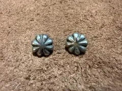 【一点物】ウィローグリーン×ドット柄 パールフラワー ピアス/イヤリング
