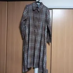ブラウン・ブルー チェック柄 Aラインシャツワンピース