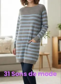 【美品】ロングセーター グレー✖️水色 ボーダー 31 Sons de mode