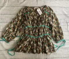 リプレイ ボタニカル柄緑のリボンのブラウス S 新品タグ付き