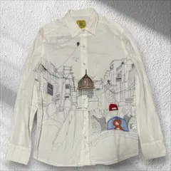 【美品】ヒューゴボス SLIM FIT ドット柄 長袖シャツ 白 X【D181】