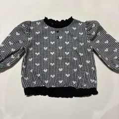 ハート柄長袖カットソー ブラック/ホワイト