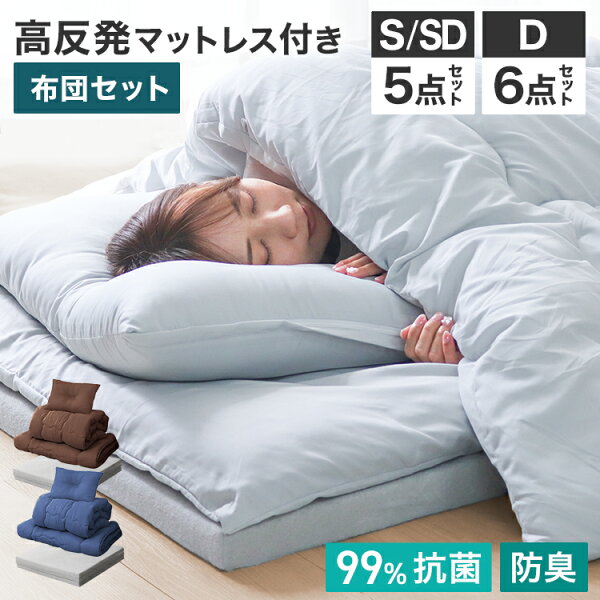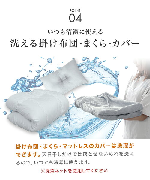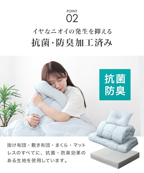 そのまま使える 布団セット マットレス付き 固綿入り 敷布団 掛け布団 枕 収納ケース 4~5点セット 洗える 抗菌 防臭 防カビ ほこりが出にくい シングル セミダブル ダブル ふとんセット 組布団 寝具セット 布団 来客用 コンパクト 寝具 p2