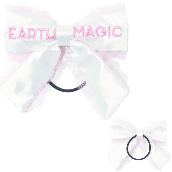 EARTHMAGIC【正規取扱店】アースマジック ロゴ刺繍入りサテンリボンヘアゴム 白 黒 ペールピンク ラベンダー 紫 ヘアゴム 女児 女の子 子供服 キッズ アクセサリー ヘアアクセサリー 雑貨 【50%OFF】