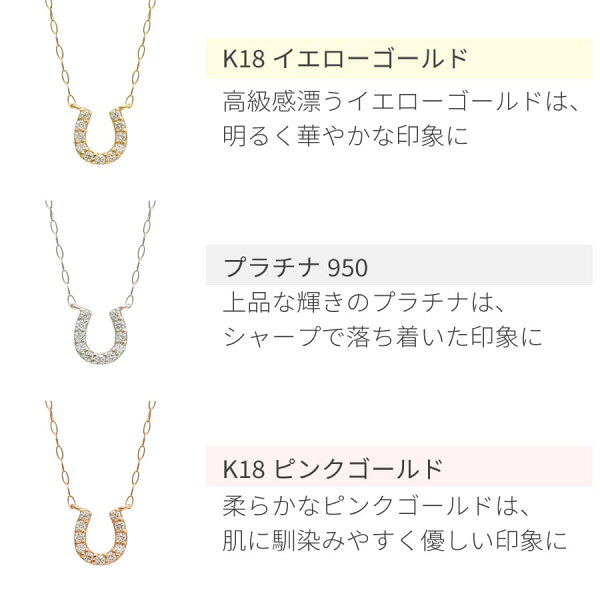 【10%OFFクーポン】【即納可】 ダイヤモンド ネックレス 馬蹄 18金 イエローゴールド プラチナ 950 k18 ピンクゴールド 18k ホースシュー シンプル 4月 誕生石 ダイアモンド ジュエリー 日本製 ギフト プレゼント 就職祝い 結婚記念日 午年 馬 バレンタイン