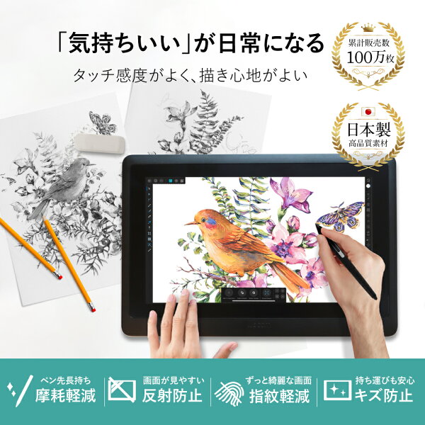 Wacom Cintiq 16 (DTK1660K1D / DTK1660K0D / DTK168) 保護フィルム アンチグレア 反射防止 反射低減 ノングレア 非光沢 マット | ワコム モバイルスタジオ プロ つるつる 極薄 フィルム 指紋 汚れ防止 傷防止 硬度3H 液晶画面保護 イラスト ペンタブ 液タブ 絵描き