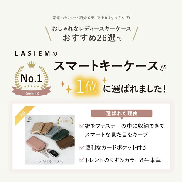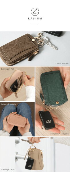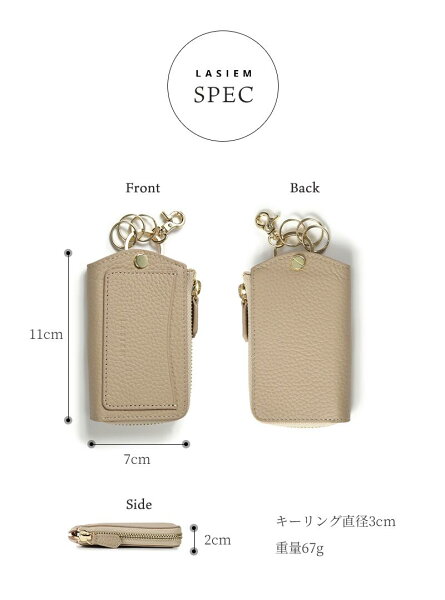 【楽天1位】キーケース レディース スマートキーケース L字 ファスナー 車 スマートキー キーリング カラビナ キーホルダー 小さい コンパクト ミニ 人気 本革 牛革 レザー 革 かわいい 可愛い おしゃれ お洒落 ギフト プレゼント ラシエム LASIEM ブランド