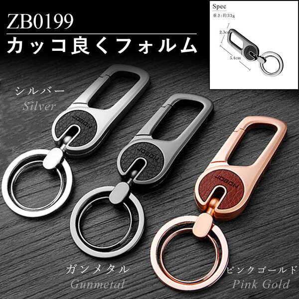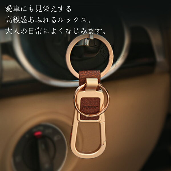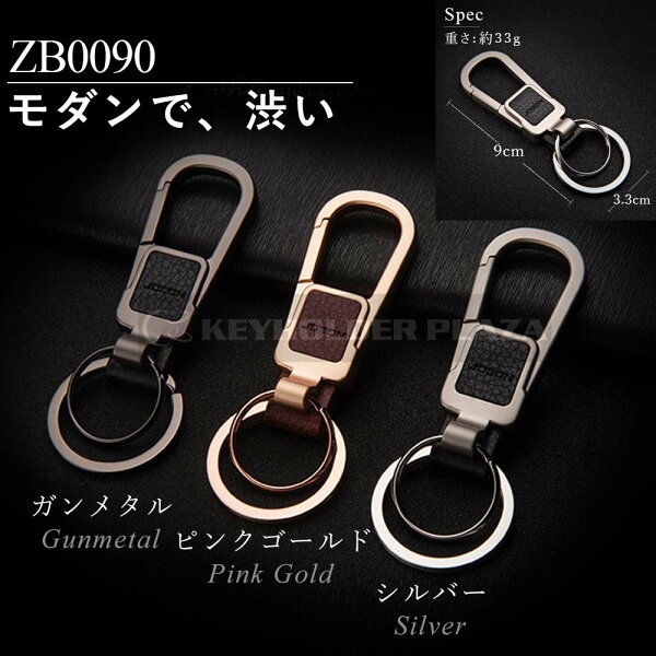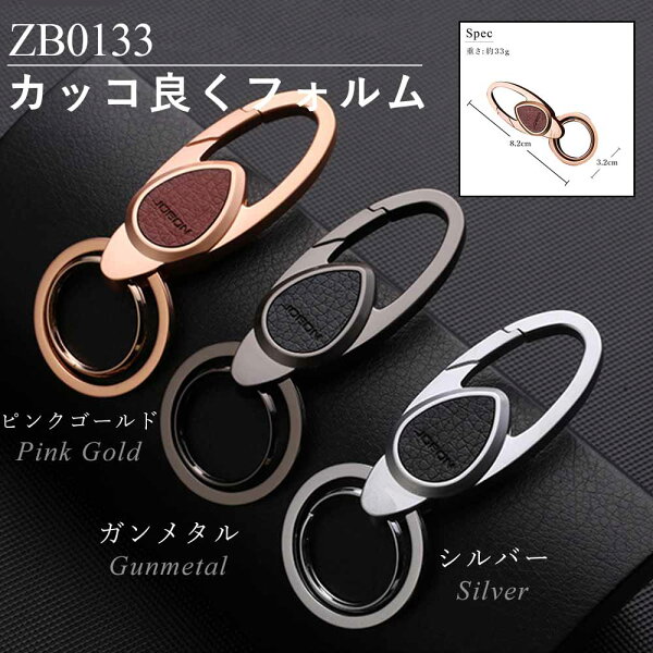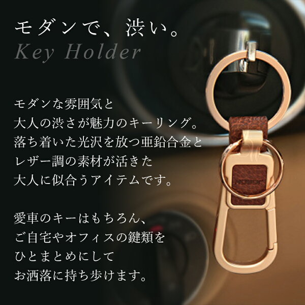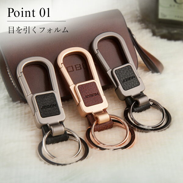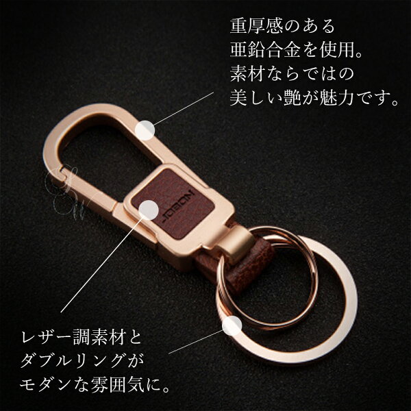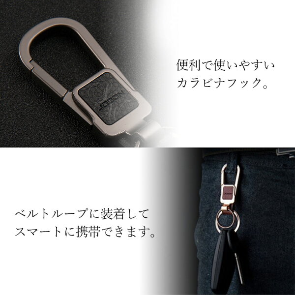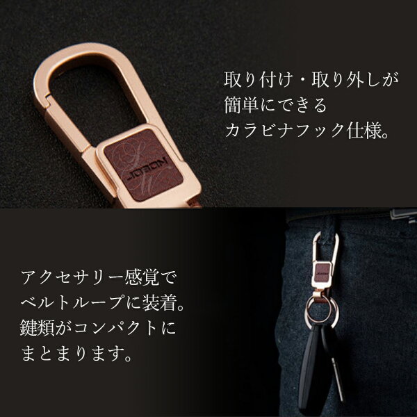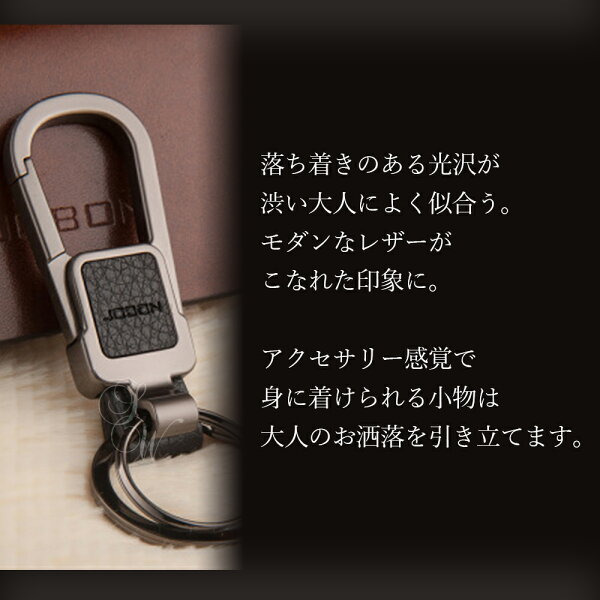 【JOBON公式】キーホルダー/キーリング モダン/渋い/おしゃれ メンズ/レディース かっこいい 男性 家 車 鍵 カギ キー ベルトループ装着 カラビナフック スマートキー シンプル アクセサリー ダブルリング レザー調 高級 大人