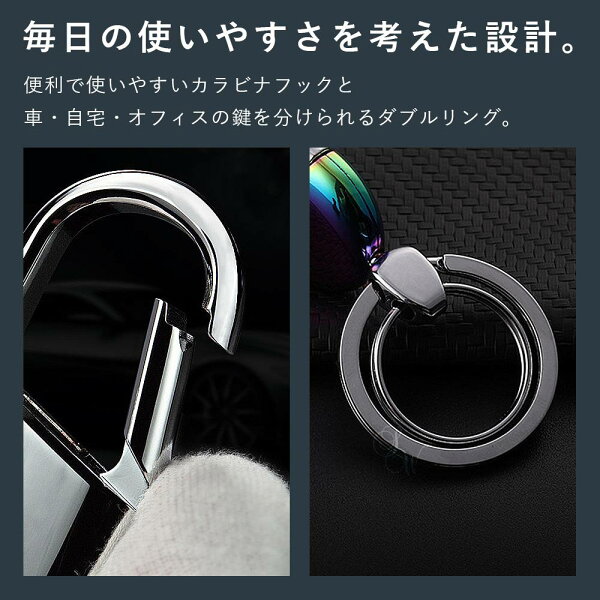 【JOBON公式】カラビナフックキーホルダー 亜鉛合金 シンプル ダブルリング キーリング メンズ 男性 おしゃれ かっこいい 大人 アクセサリー ギフト 自宅 オフィス 会社 家 車 鍵 カギ かぎ 自転車 オフィス キー オシャレ