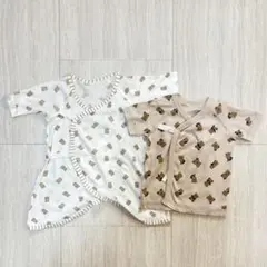 クマ柄肌着2点セット(ホワイト・ベージュ)
