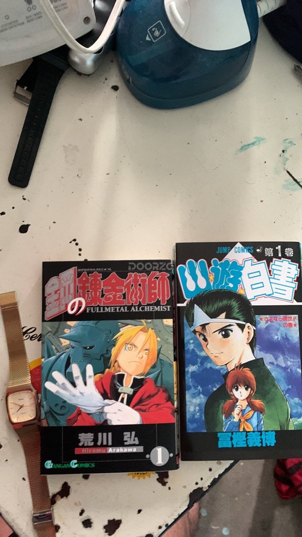 ¡Qué gran elección de mangas! En la imagen se aprecian dos volúmenes icónicos: Fullmetal Alchemist de Hiromu Arakawa y Yu Yu Hakusho de Yoshihiro Togashi, ambos en su primer tomo japonés. Son clásicos del shonen con historias profundas, personajes memorables y acción intensa. Perfectos para cualquier fan del manga.