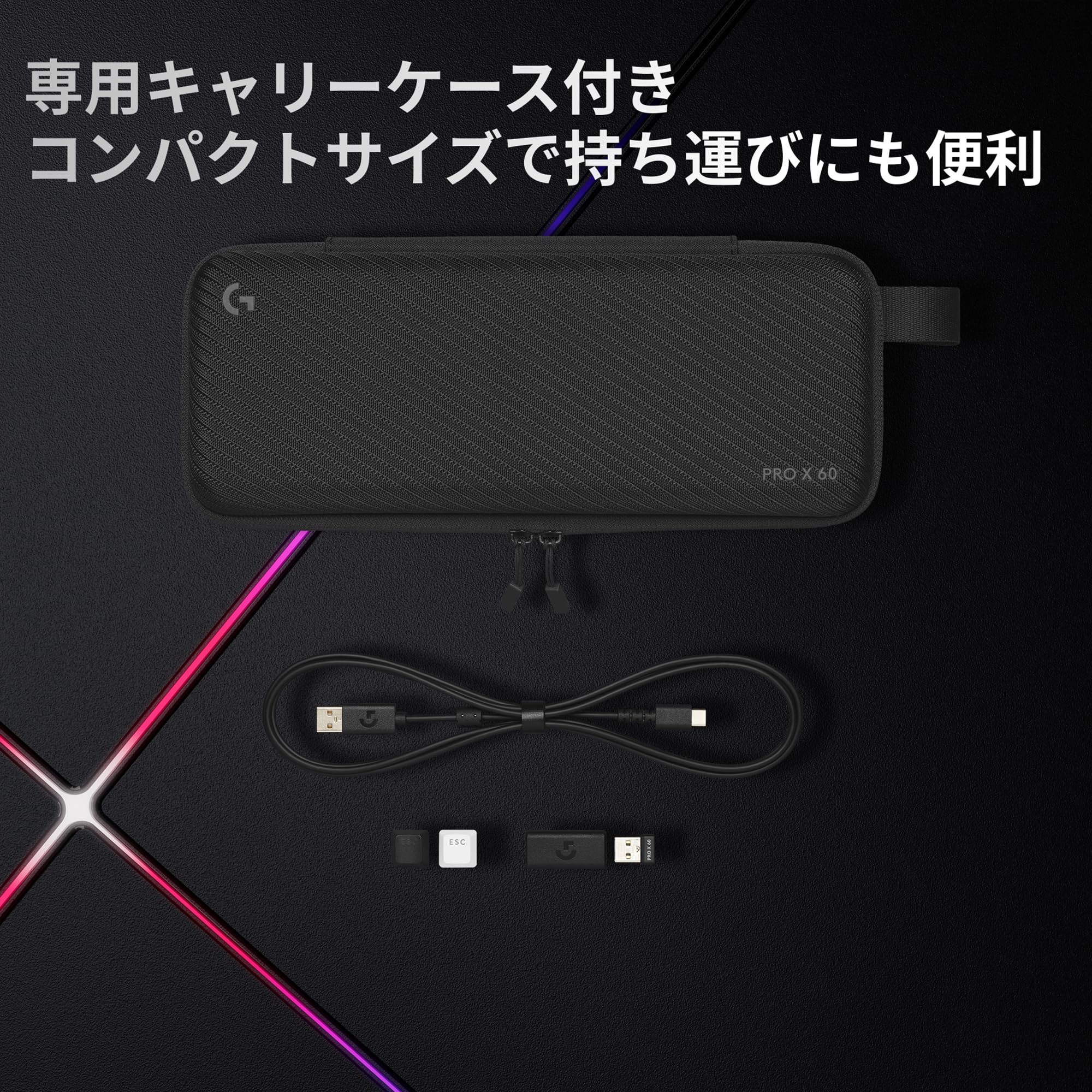 | 同梱商品: | 製品本体、ワイヤレスレシーバー、充電コード、レシーバー延長アダプター、ロジクールGキーキャップ、キャリーケース |