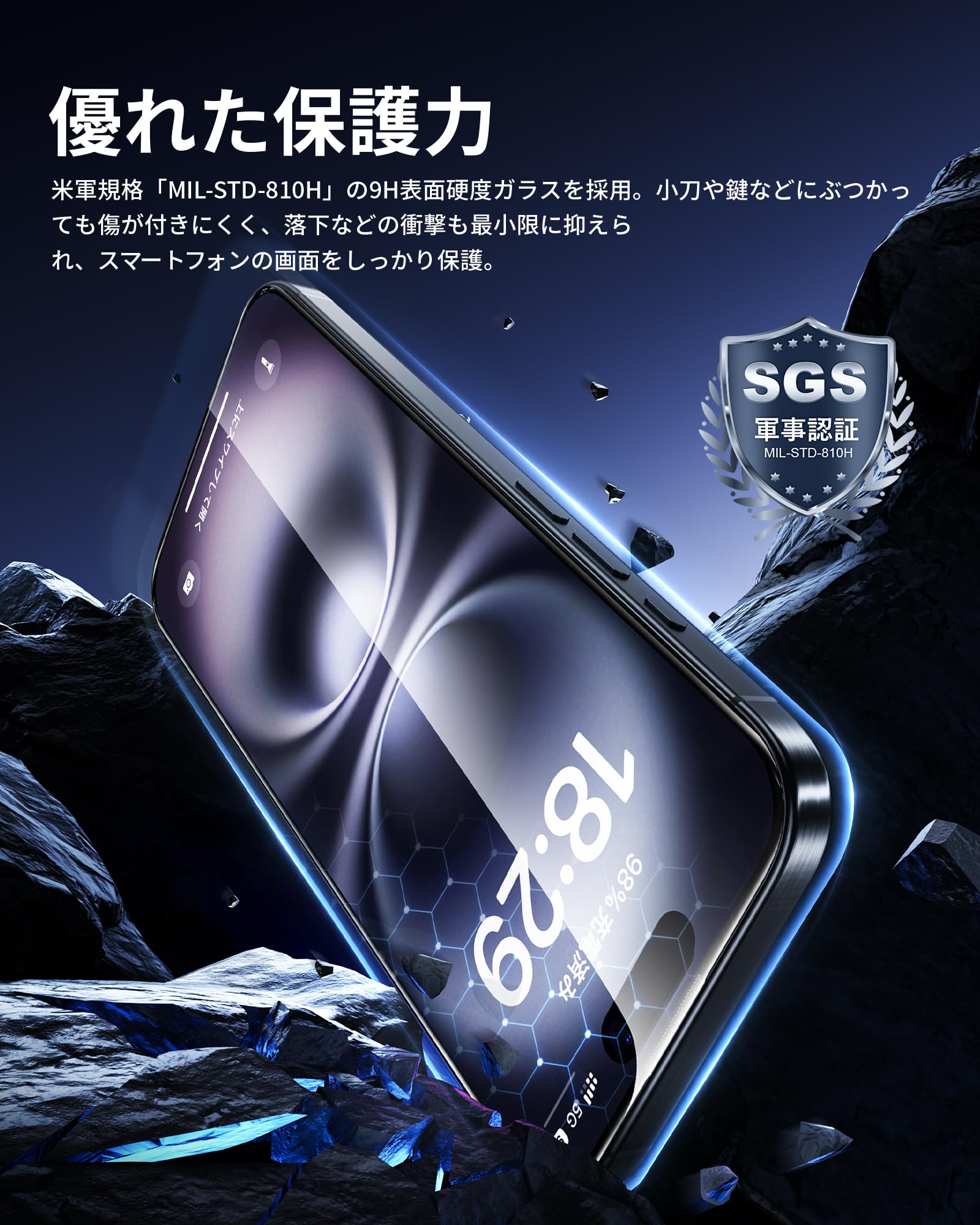 | その他 機能: | 高透過率、気泡防止、指紋・汚れ防止、硬度9h、飛散防止、耐衝撃、ホコリ防止 |
