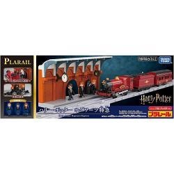 ホグワーツ特急に9と3/4番線プラットホーム、プラキッズ3体、リアル直線レール、ストップレール(リアルレール仕様)付きのセットです。
