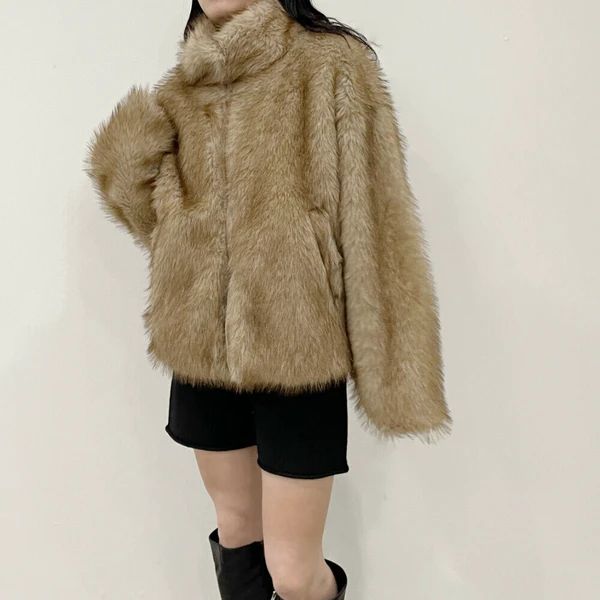 Volume Fake Fur Jacket | フェイクファージャケット ファーコート ミックス / フェイクファーコート ボリュームジャケット 韓国アウター 暖かい 冬コーデ