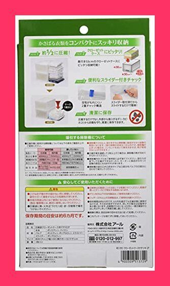 【スタッフおすすめ!】アール 【Airsh(エアッシュ)】 クローゼット用マチ付圧縮袋 2枚入り RE-010
