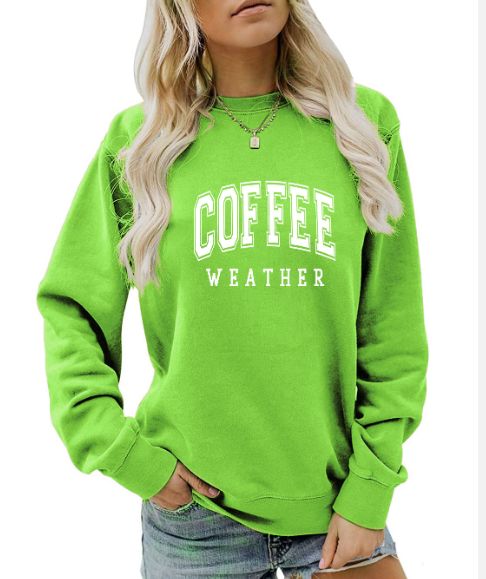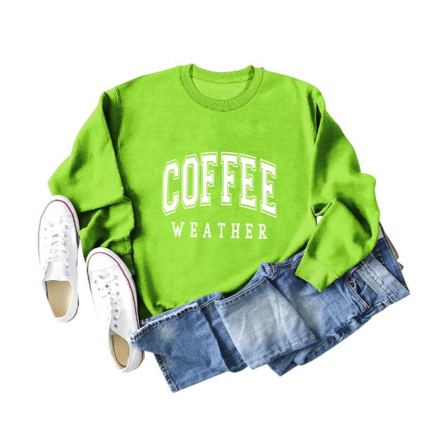 【ショッキンググリーン】スウェット トレーナー ロゴ 英字プリント 白フォント レディース ゆったり 暖かい トップス 秋冬 コーヒー おしゃれ カジュアル