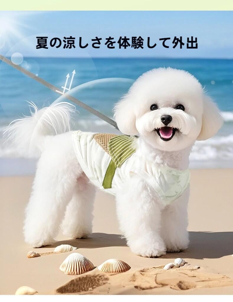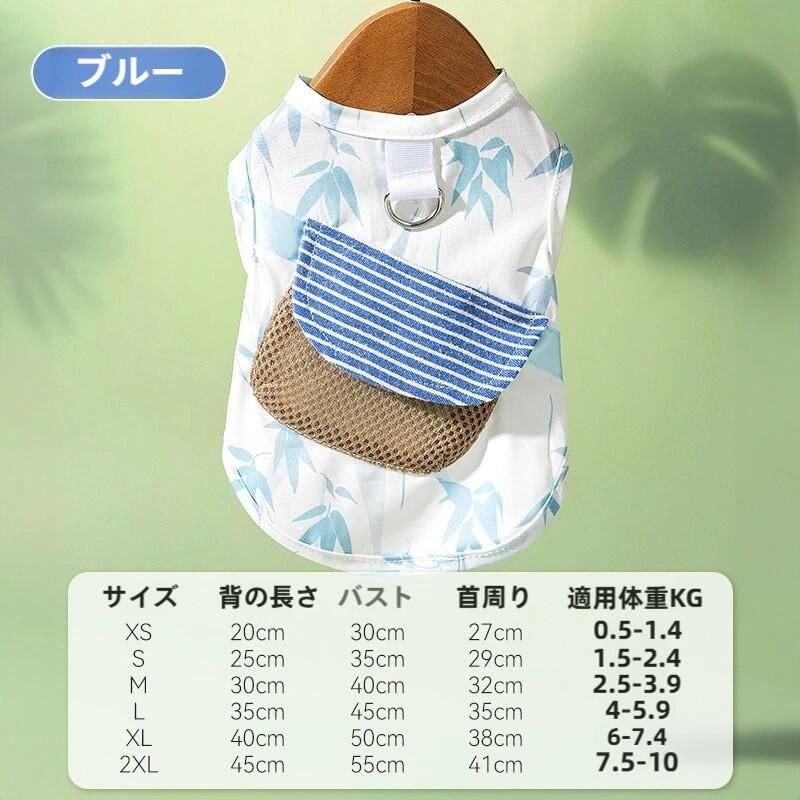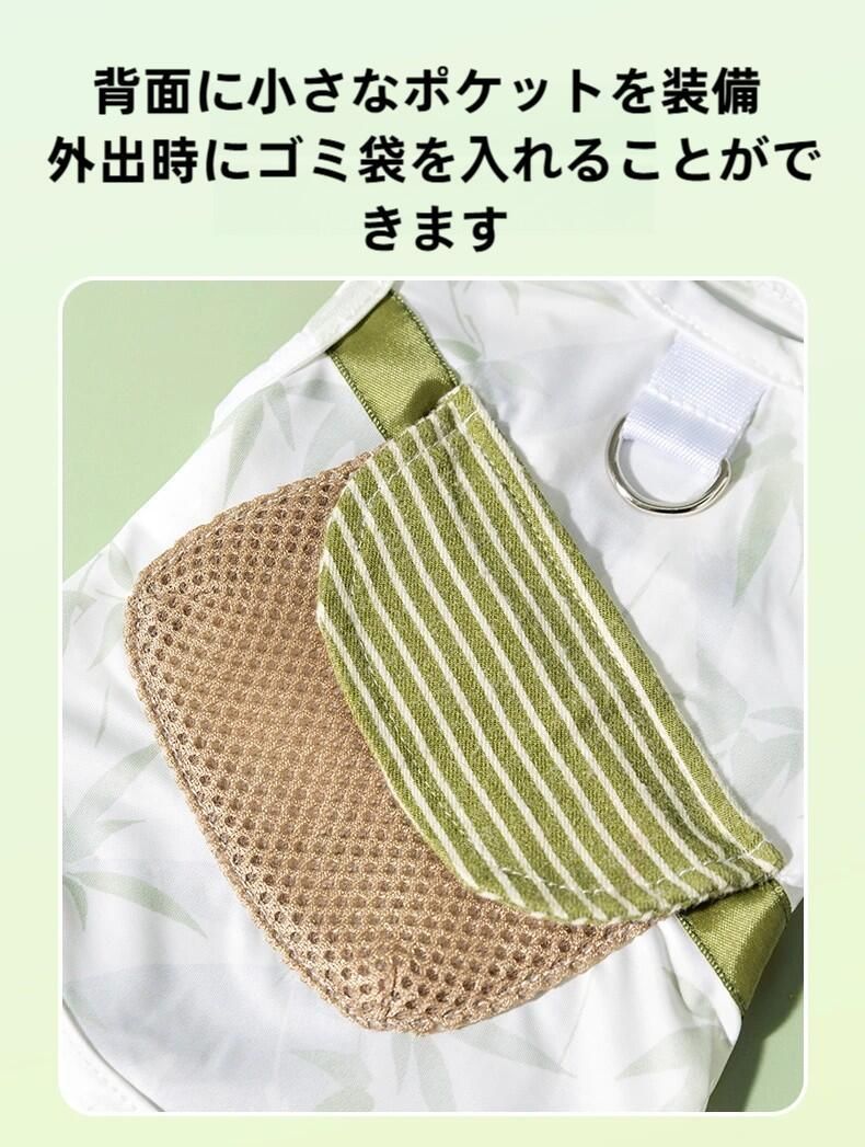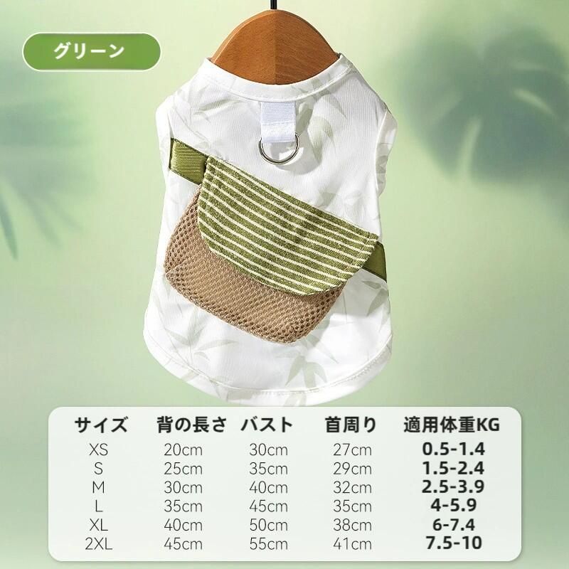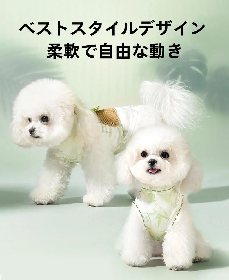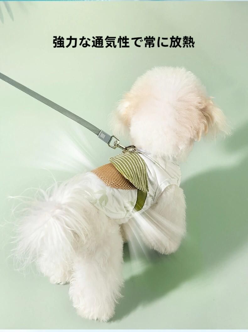 犬用クールウェア 背中ポケット付き 牽引対応 夏用冷感服 UPF50+ 竹柄 通気速乾
