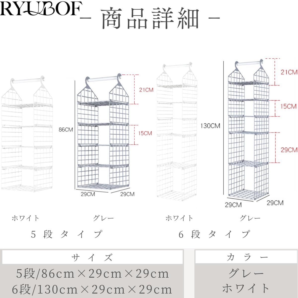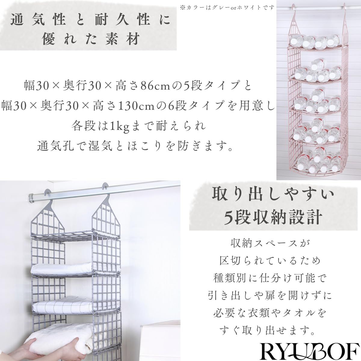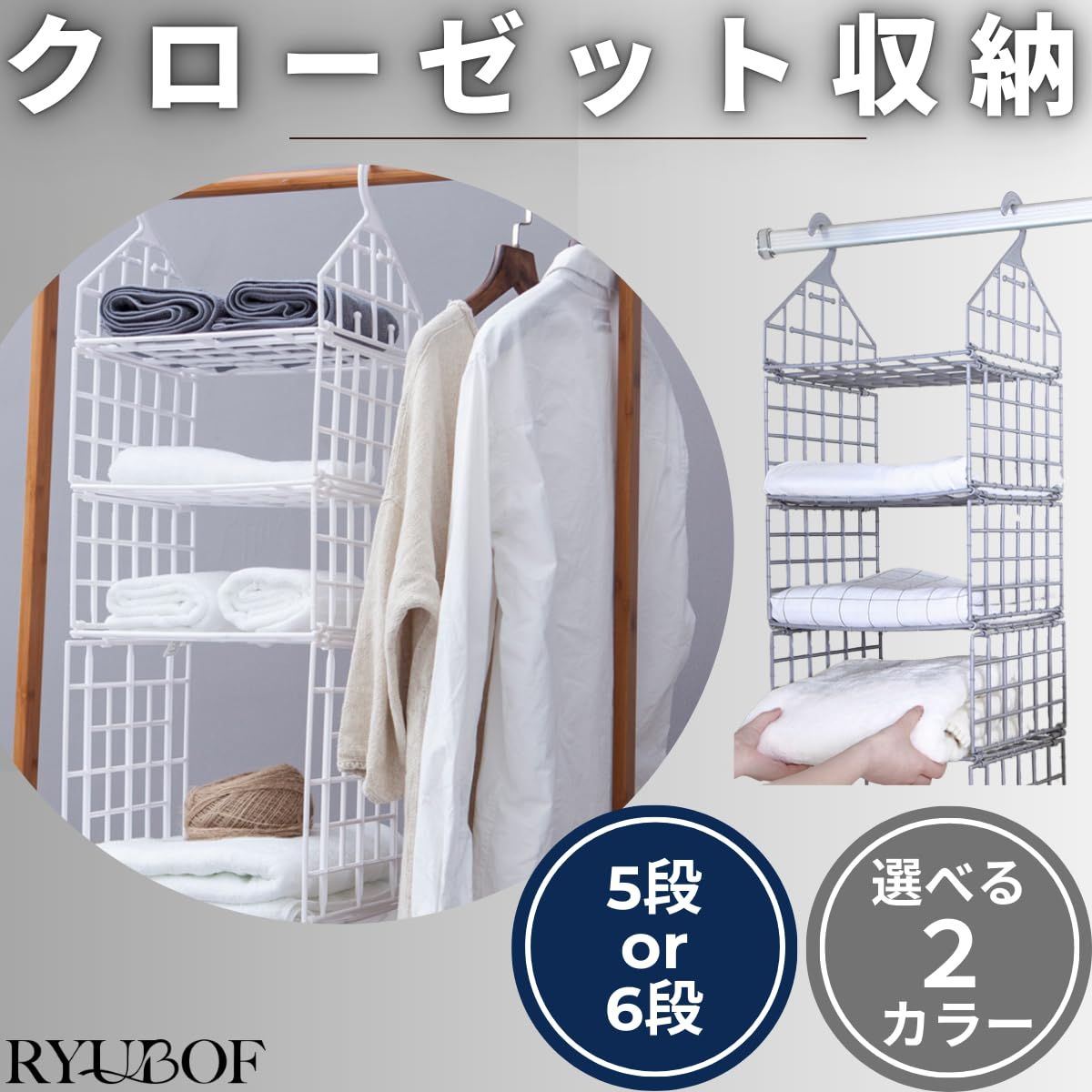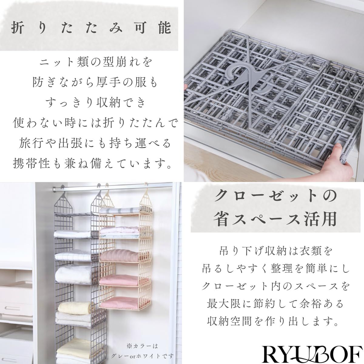 RYUBOF クローゼット収納 吊り下げ収納 折りたたみ式 服収納 衣類収納 ハンガー収納 タビトラ 吊り下げラック 下着収納 衣装ケース クローゼットオーガナイザー (グレー, 5段) [グレー] [5段]