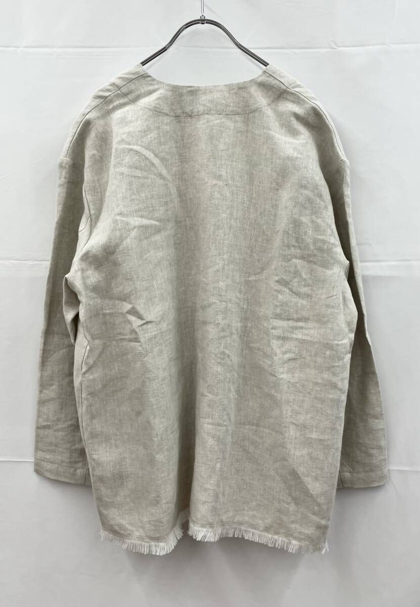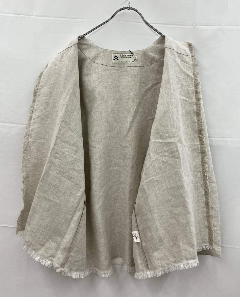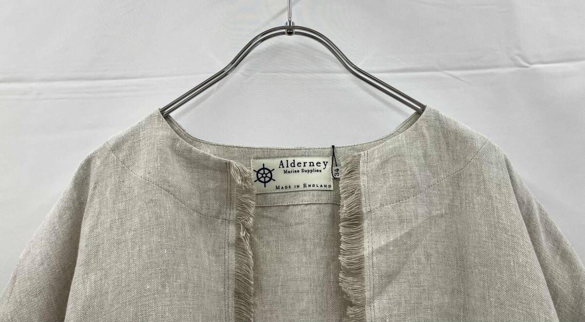 Alderney アルダニー ノーカラージャケット A540 リネン100% イギリス製 サイズ34 ベージュ 通年