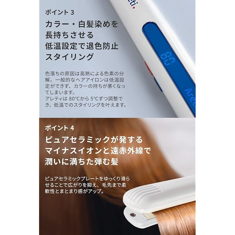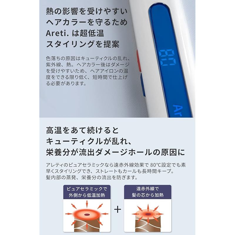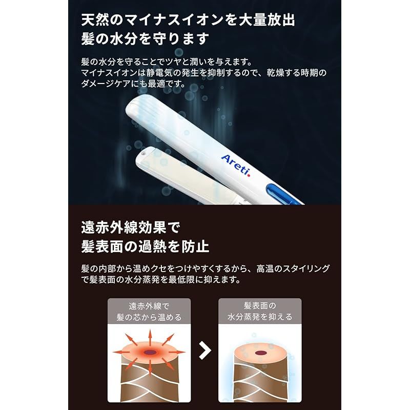 商品名:Areti アレティ ヘアアイロン 20mm ピュアセラミック イノベーションモデル 急速加熱 ストレート カール 2way 前髪 メンズにも 24段階の温度調整 海外対応 i679PCPH-WH