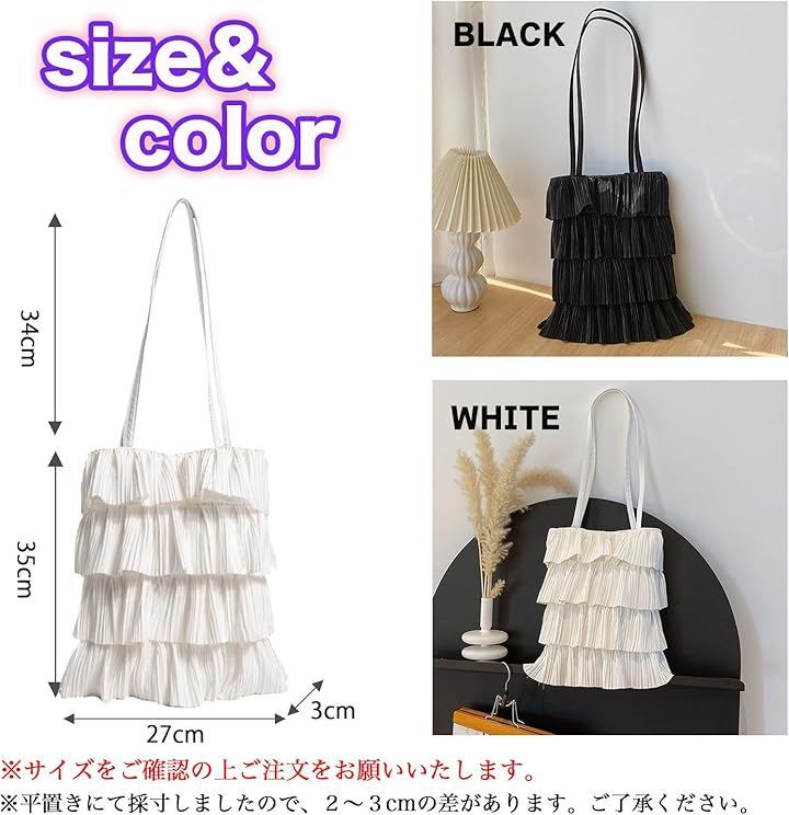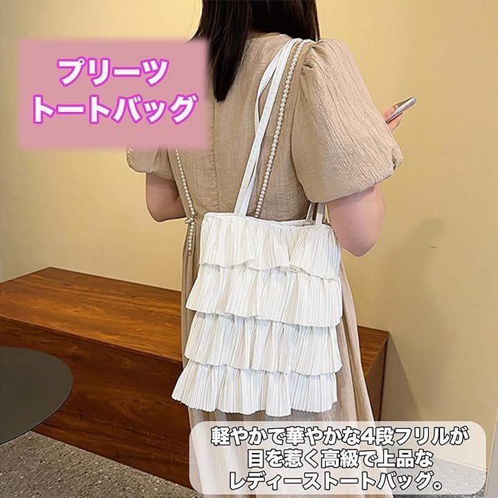 軽やかで華やかな4段フリルが目を惹く上品なレディーストートバッグ。