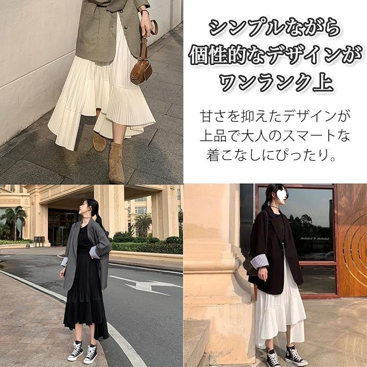 アシンメトリーのプリーツスカートは、動きに合わせて流れるようなラインを描き、個性と洗練さを兼ね備えたスタイリッシュな一着です。