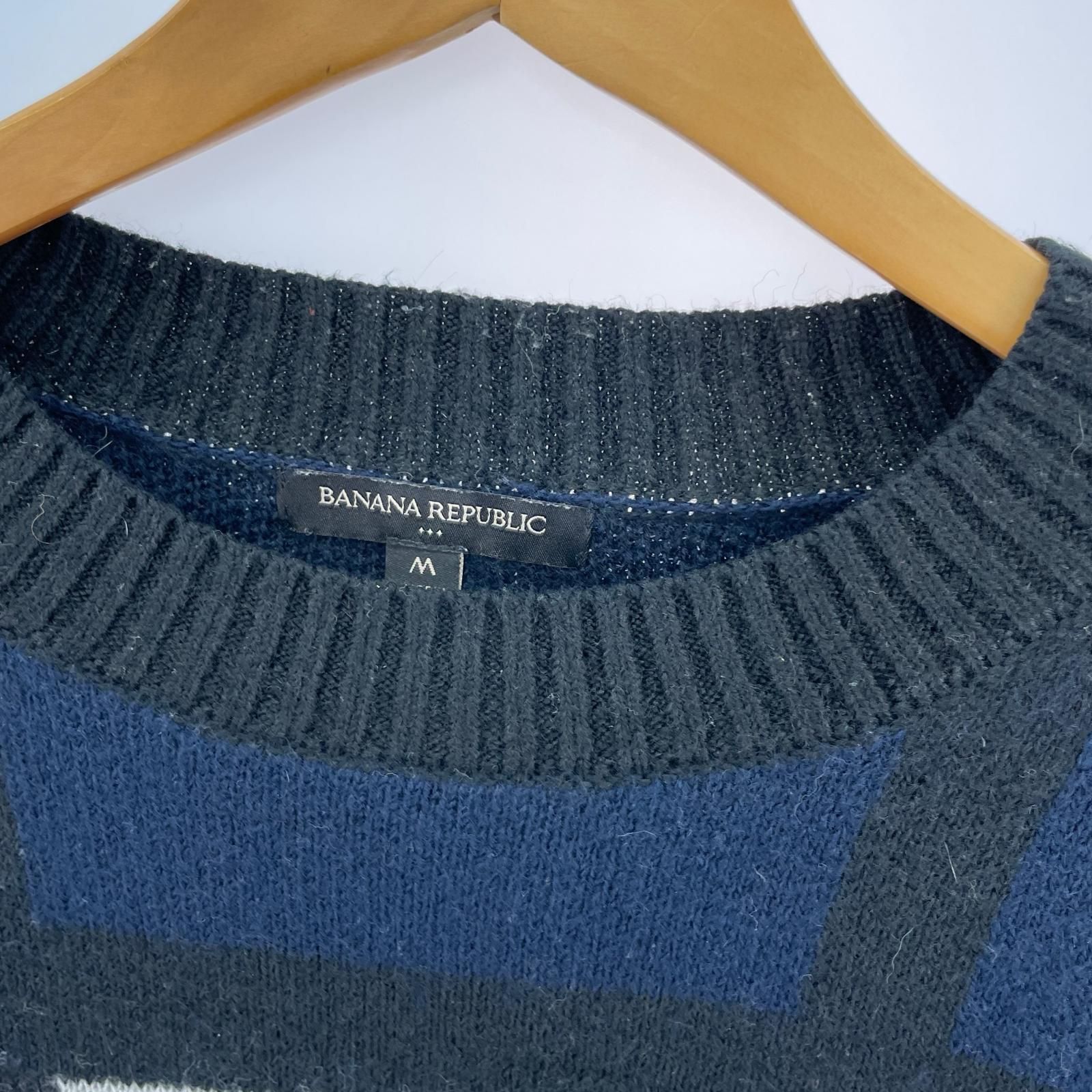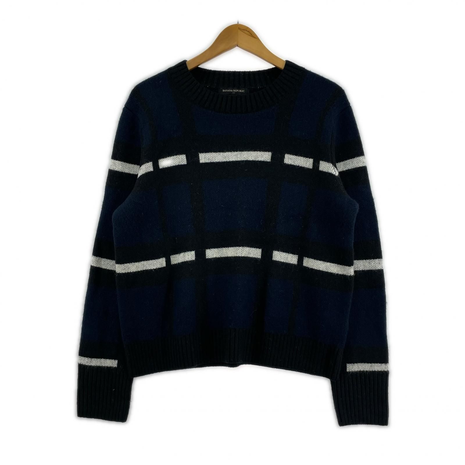 BANANA REPUBLIC バナナリパブリック チェック ニット sizeM/ブラック×ネイビー