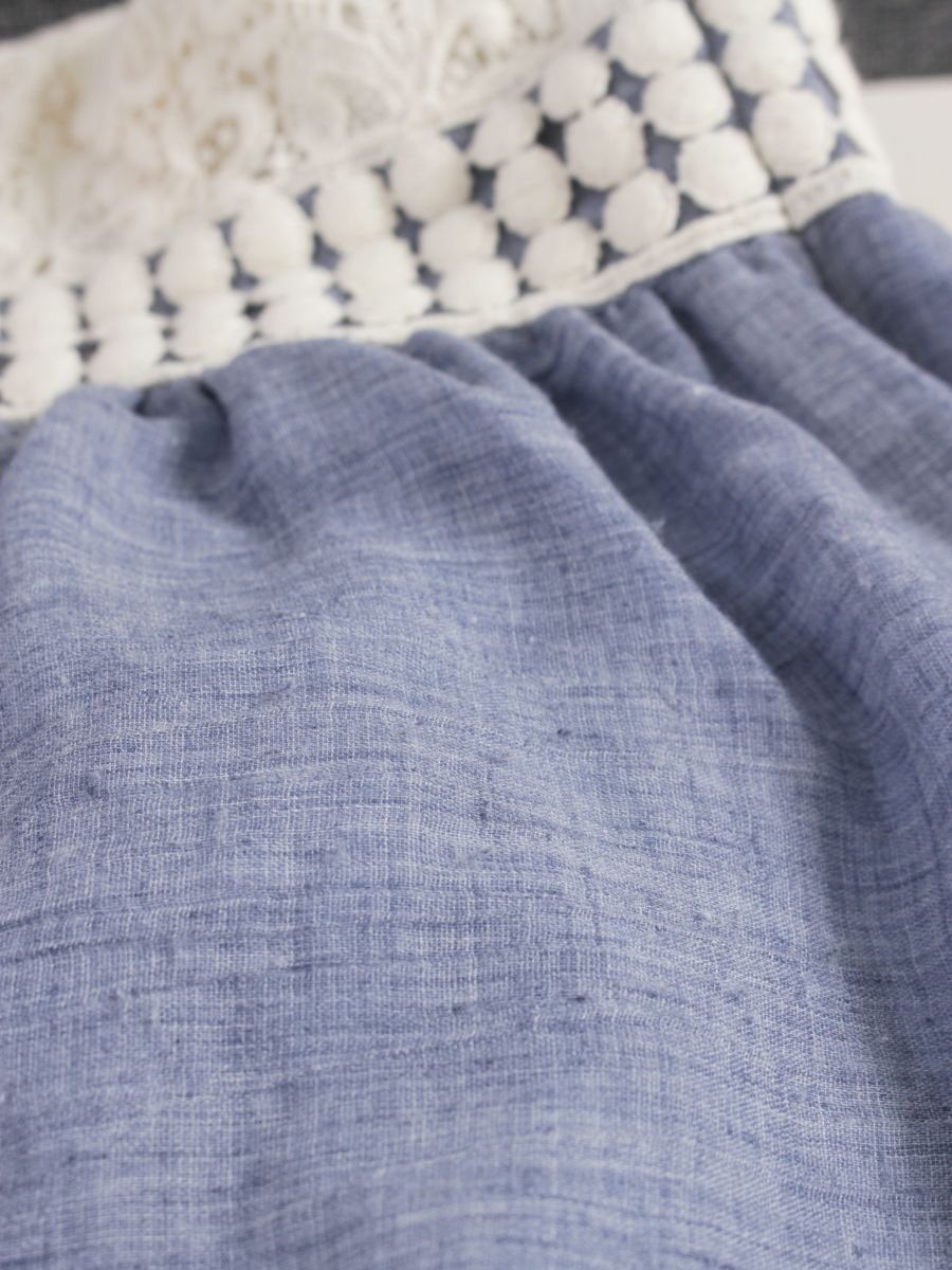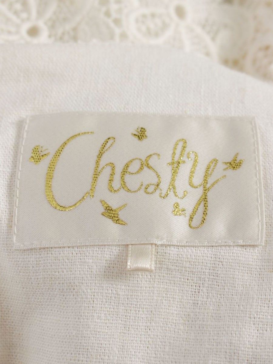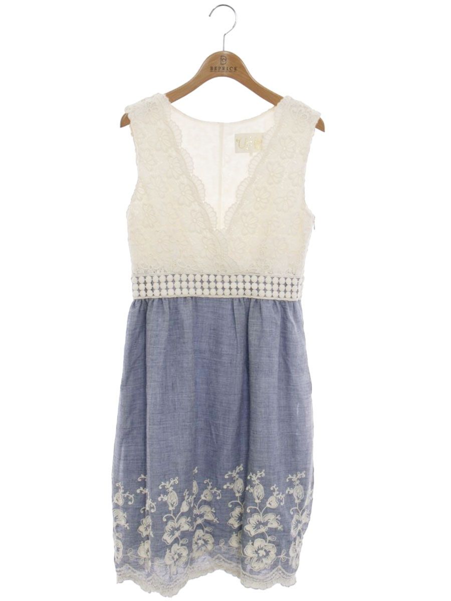 チェスティ 5S558 ワンピース 1 ホワイト/ブルー 切替 デニム調 刺繍 Vネック ITELYN45BDO4