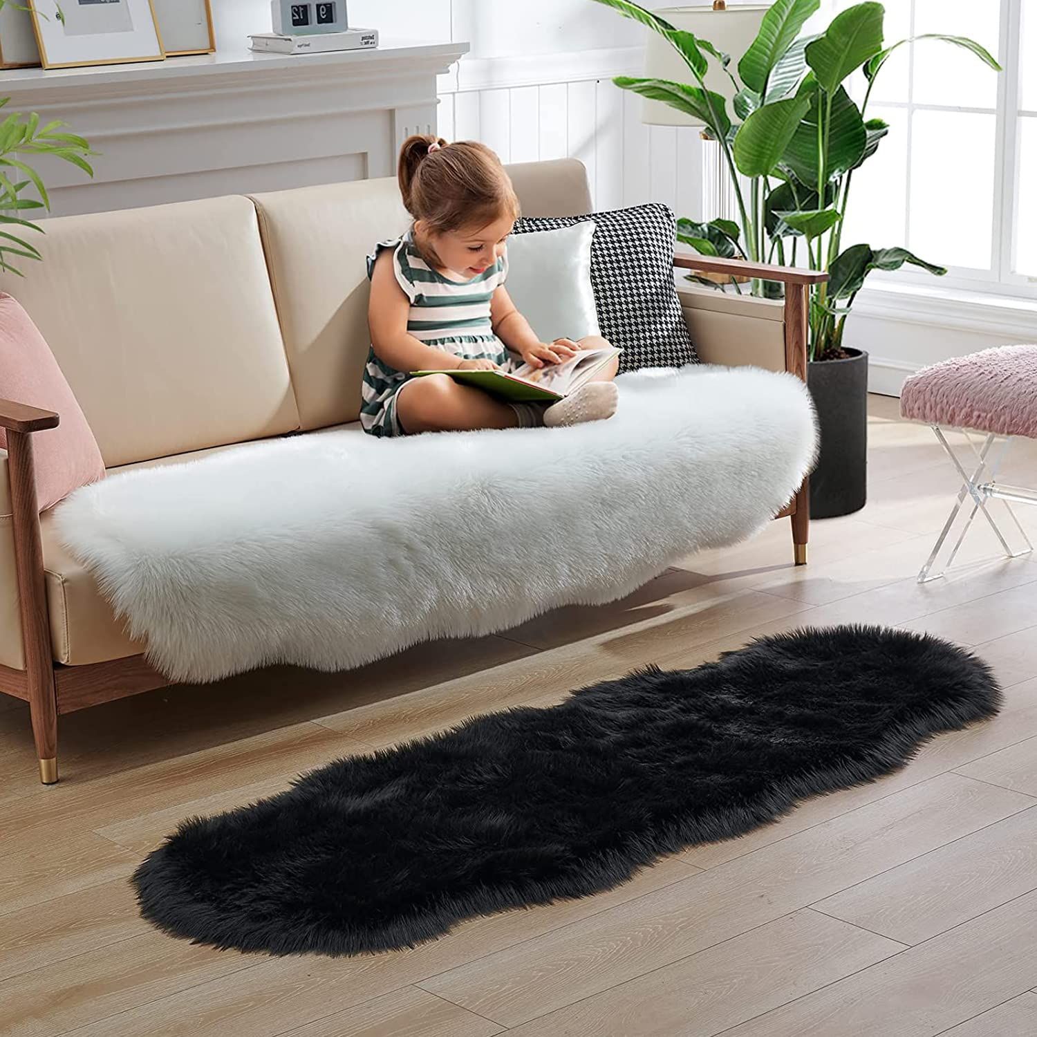 ムートンラグ フェイクシープスキンラグ 人工ウールマットカーペットラグマット柔らかい 長毛 滑り止め付き人工ウールソファシートベッドルームラグ椅子のクッション 洗える ふんわり キャンプ ラグマット