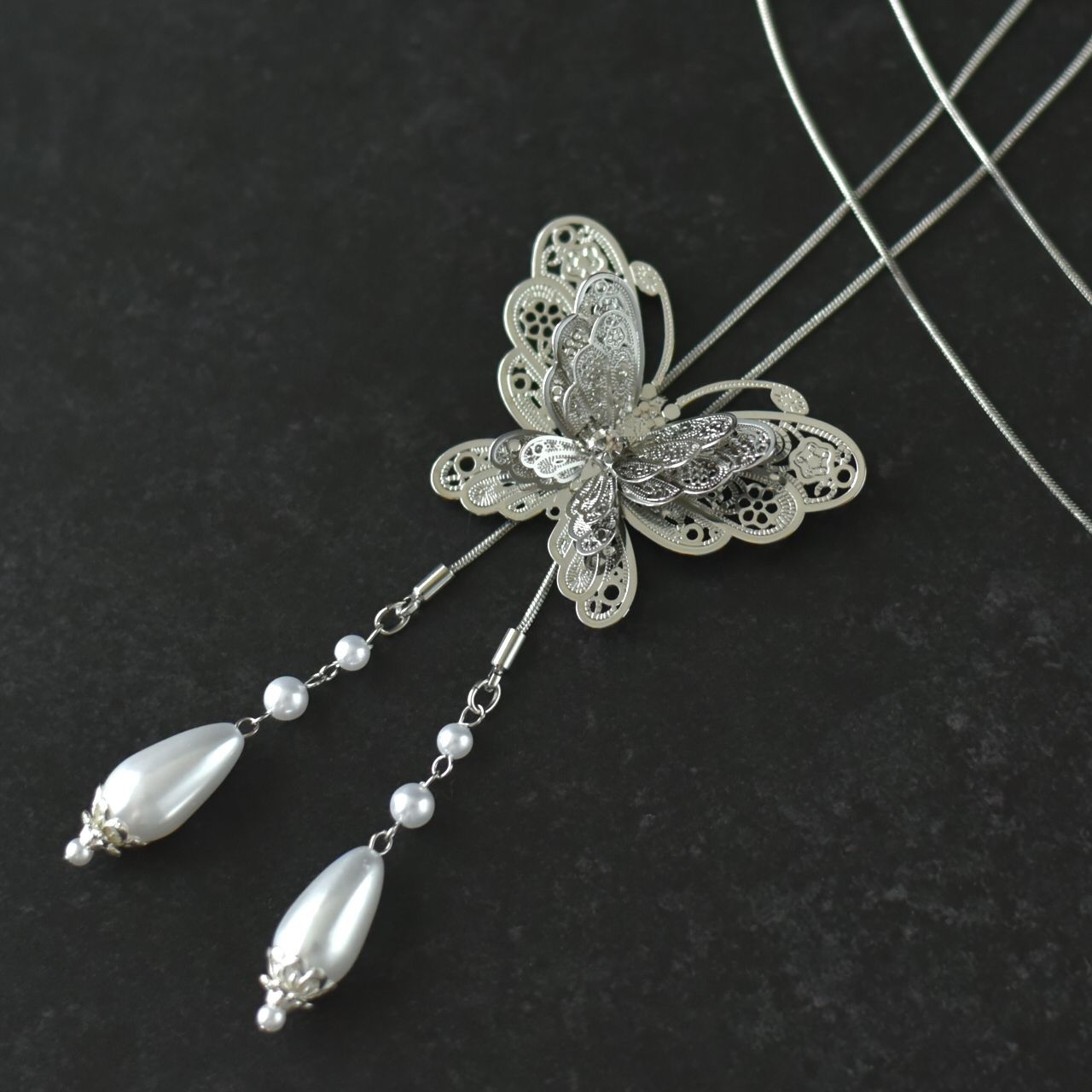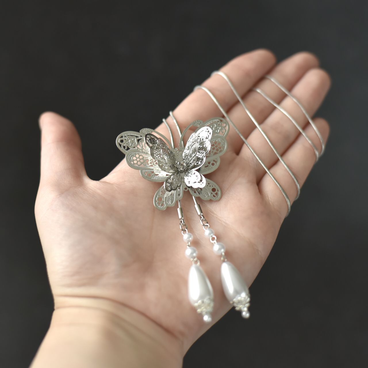 お正月 成人式 バレンタイン ひなまつり ホワイトデー 父の日 母の日 誕生日 記念日 結婚式 二次会 パーティー 夏祭り 花火 浴衣 十五夜 ハロウィン クリスマス プレゼント ギフト ゴシック ゴスロリ ロリータ ネックレス ループタイ グラデーション ネイビー シルバー 首飾り 幻想的 星空 ファンタジー 蝶 バタフライ パール ラリエット アゲハ蝶 シルバー 銀色 冬の光 春の気配 銀の羽 立体蝶 雫パール 幻想ループタイ 儚いきらめき 空夢の装い 花影の記憶 白の息 snowwing silverbutterfly wintertospring pearldrop fantasyshine shimmeringlace frostoflight dreamaccessory airyglow étoile argent papillon hiver printemps rêve stern schmetterling silber frost glanz traum stella argento farfalla luce sogno primavera estrella mariposa plata invierno primavera brillo sueño 银蝶 冰光 珍珠 雪影 幻梦 花翼 은빛나비 겨울빛 봄기운 진주빛 환상 날개결