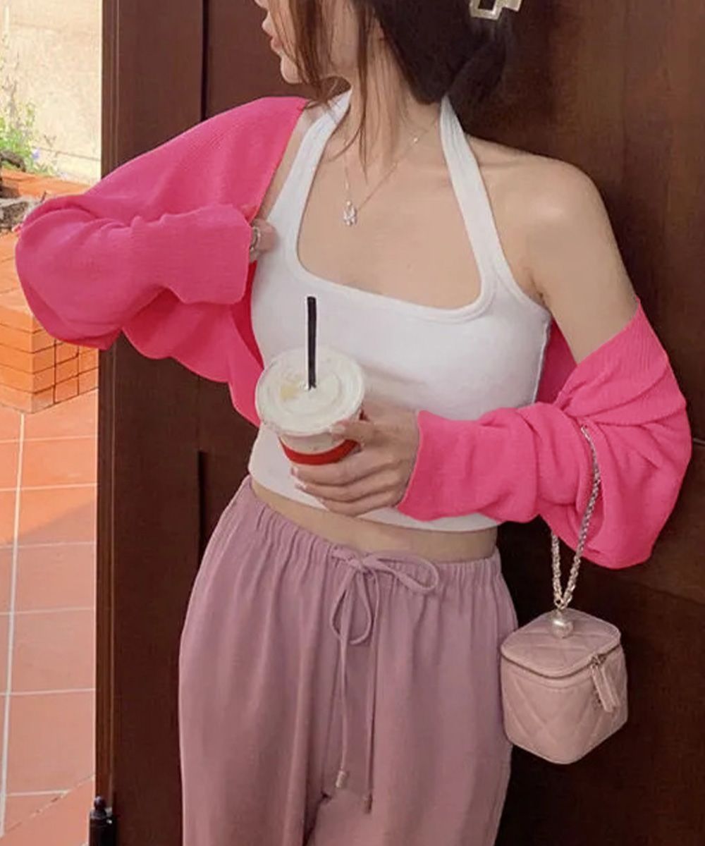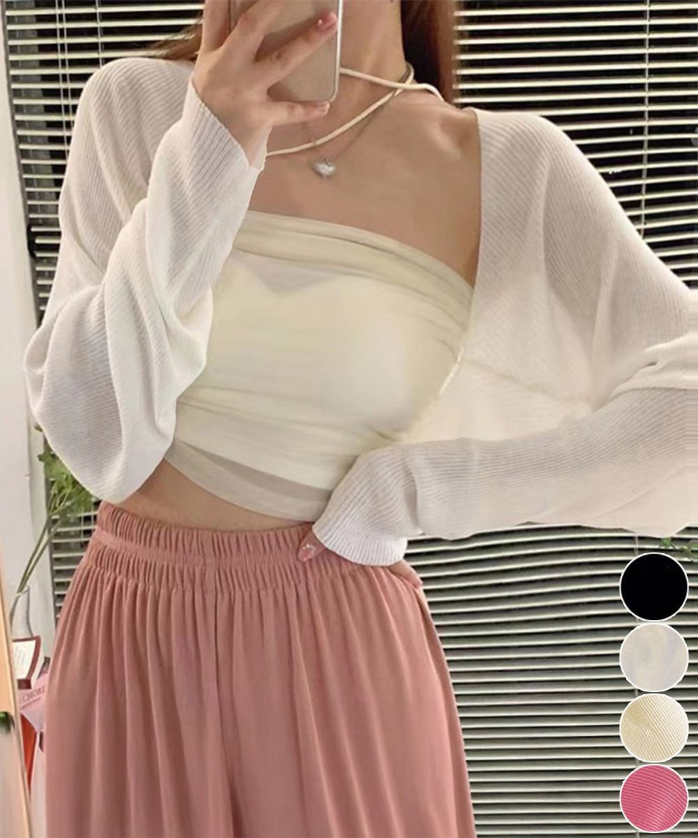 カーディガン サマーカーディガン レディース 長袖 ショート丈 クロップド丈 ボレロ リブニット 冷感タッチ 夏 トップス 紫外線対策 サマーニット カジュアル おしゃれ 薄手 きれいめ 春秋夏 短丈 韓国 UVケア
