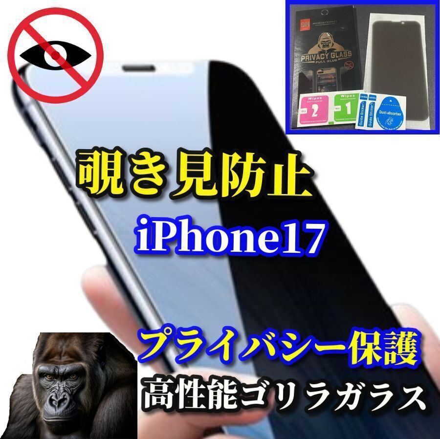 売れ筋商品【iPhone17 17AIR 17Pro 17ProMax】強化ガラスフィルム 気泡防止 指紋防止 簡単貼り付け 高硬度9H☆プライバシー保護☆《高品質ゴリラガラス》覗き見防止フィルム