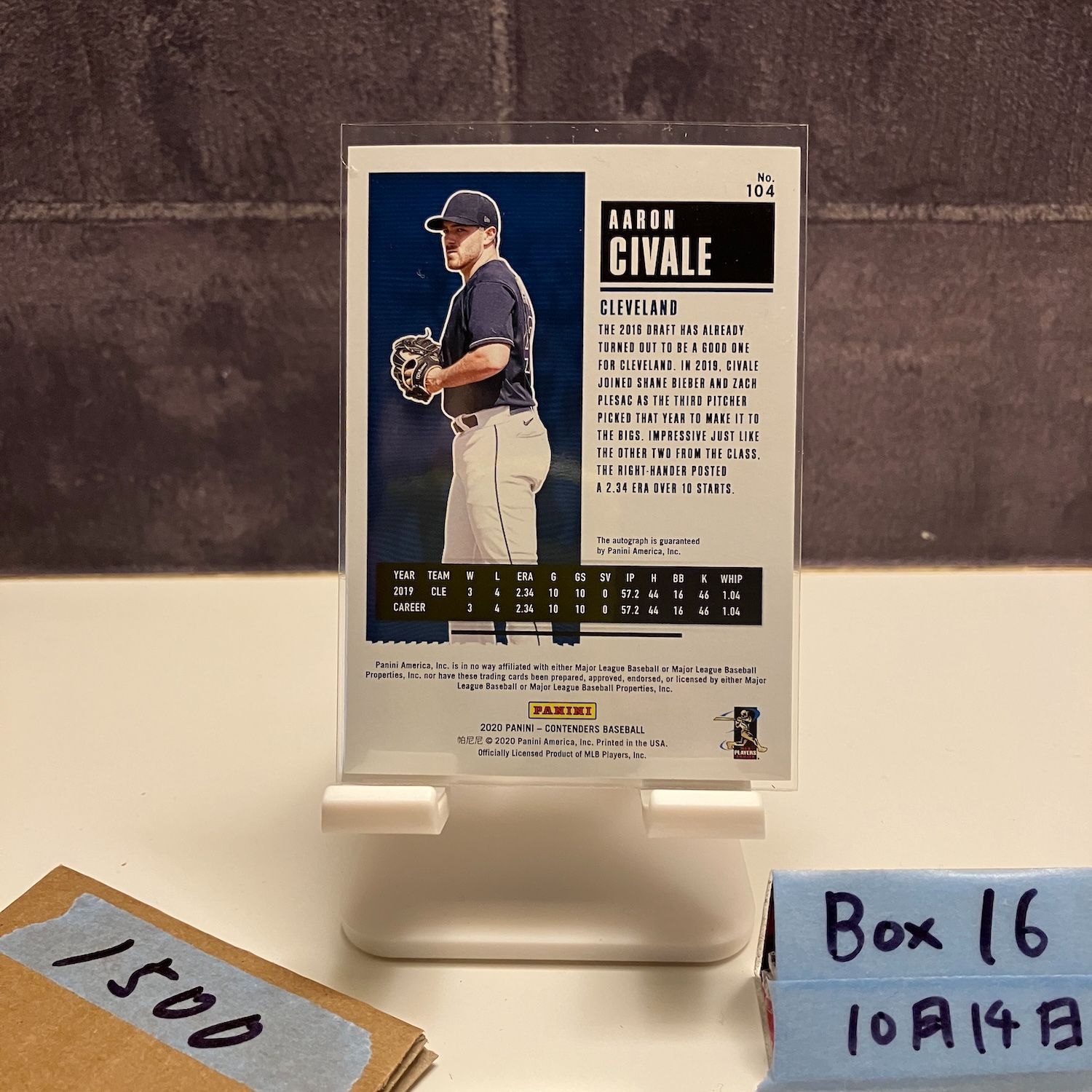 2020 Panini Aaron Civale 34/75 直筆サインカード Cleveland Draft Ticket RC ルーキー Rookie