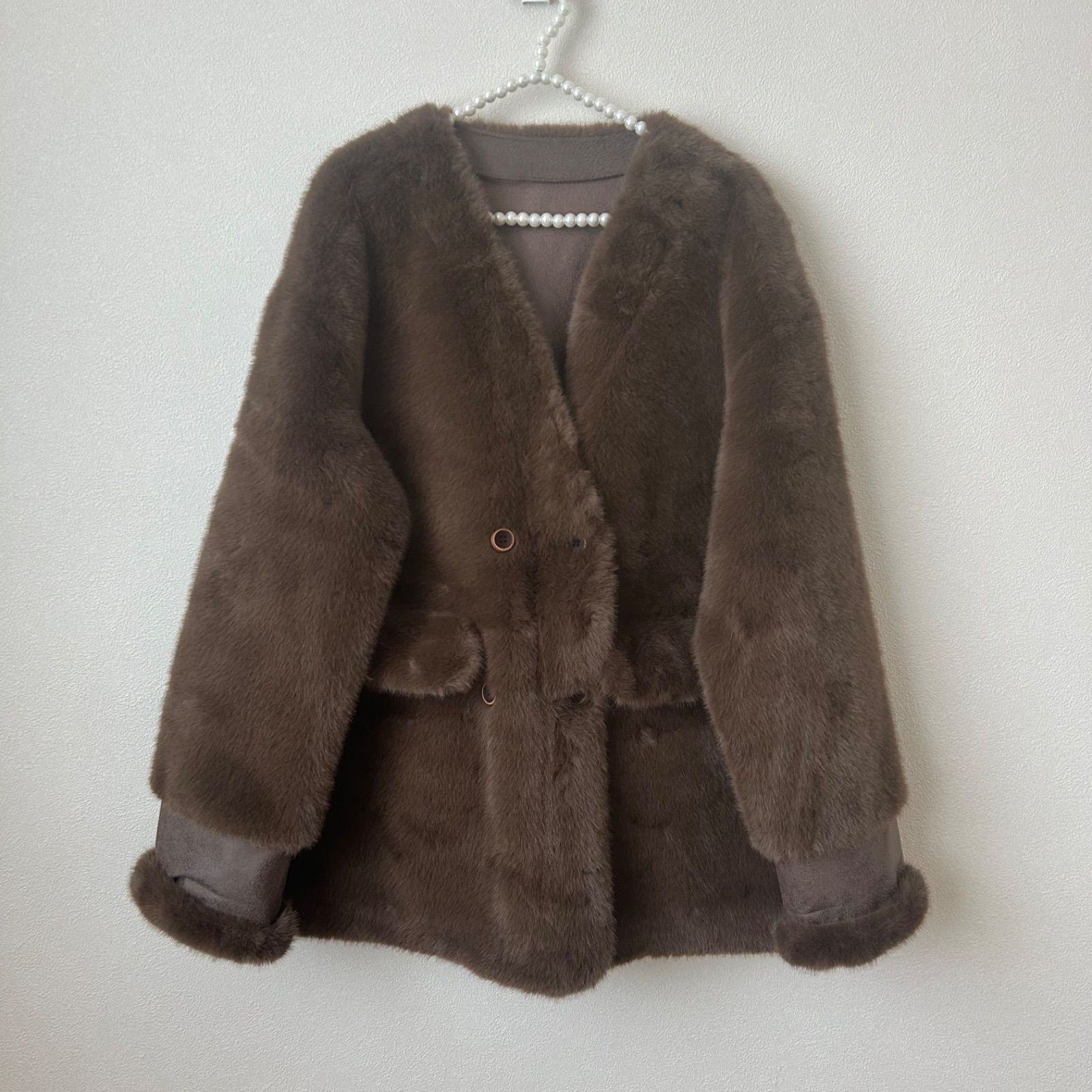 バッグ付エコファーノーカラーコート ブラウン 新品 Lumier リュミエ アウター レディース バッグ付き