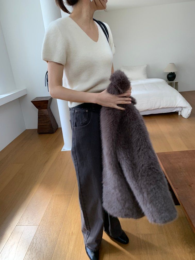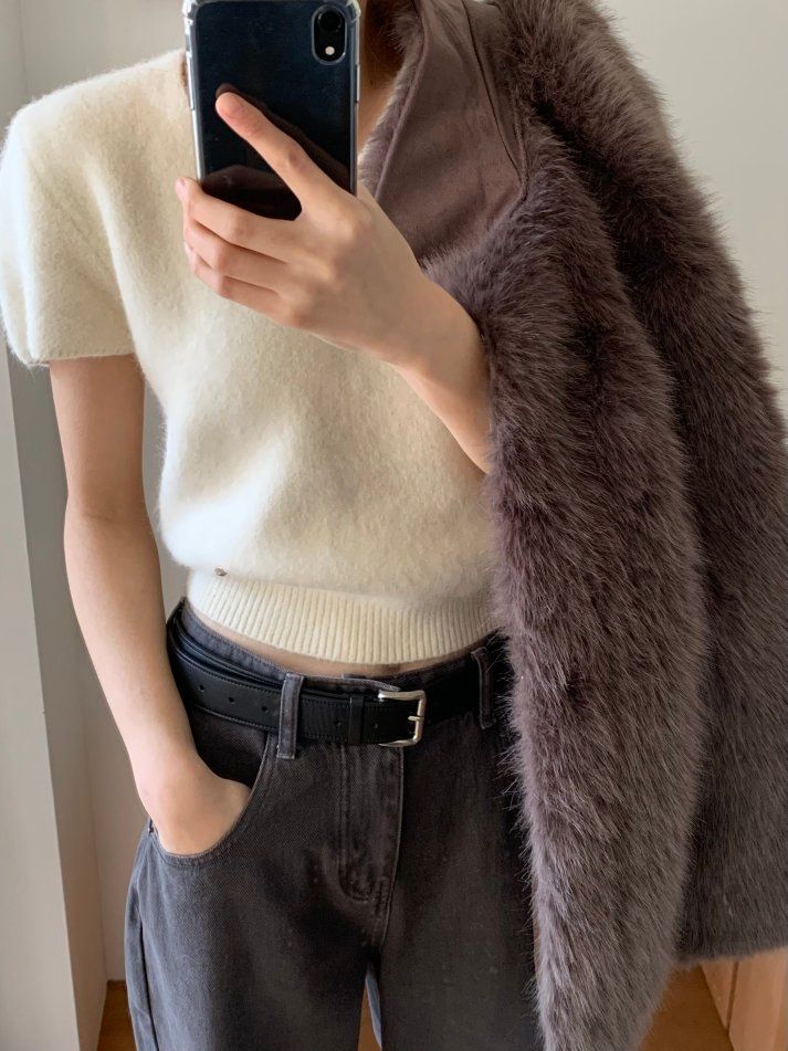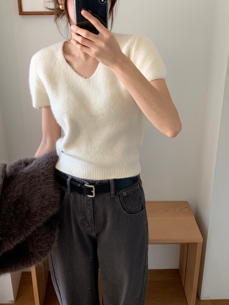 ラビット 半袖 ニット (ぽかぽか 冬 アンゴラ デイリー 冬 コーデ ゲストルック
