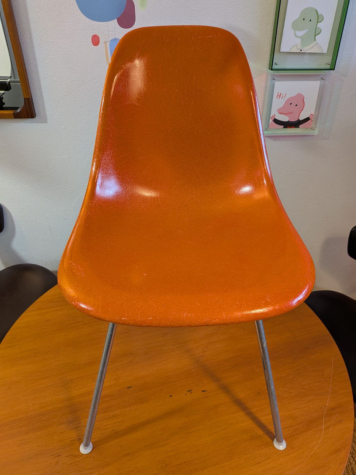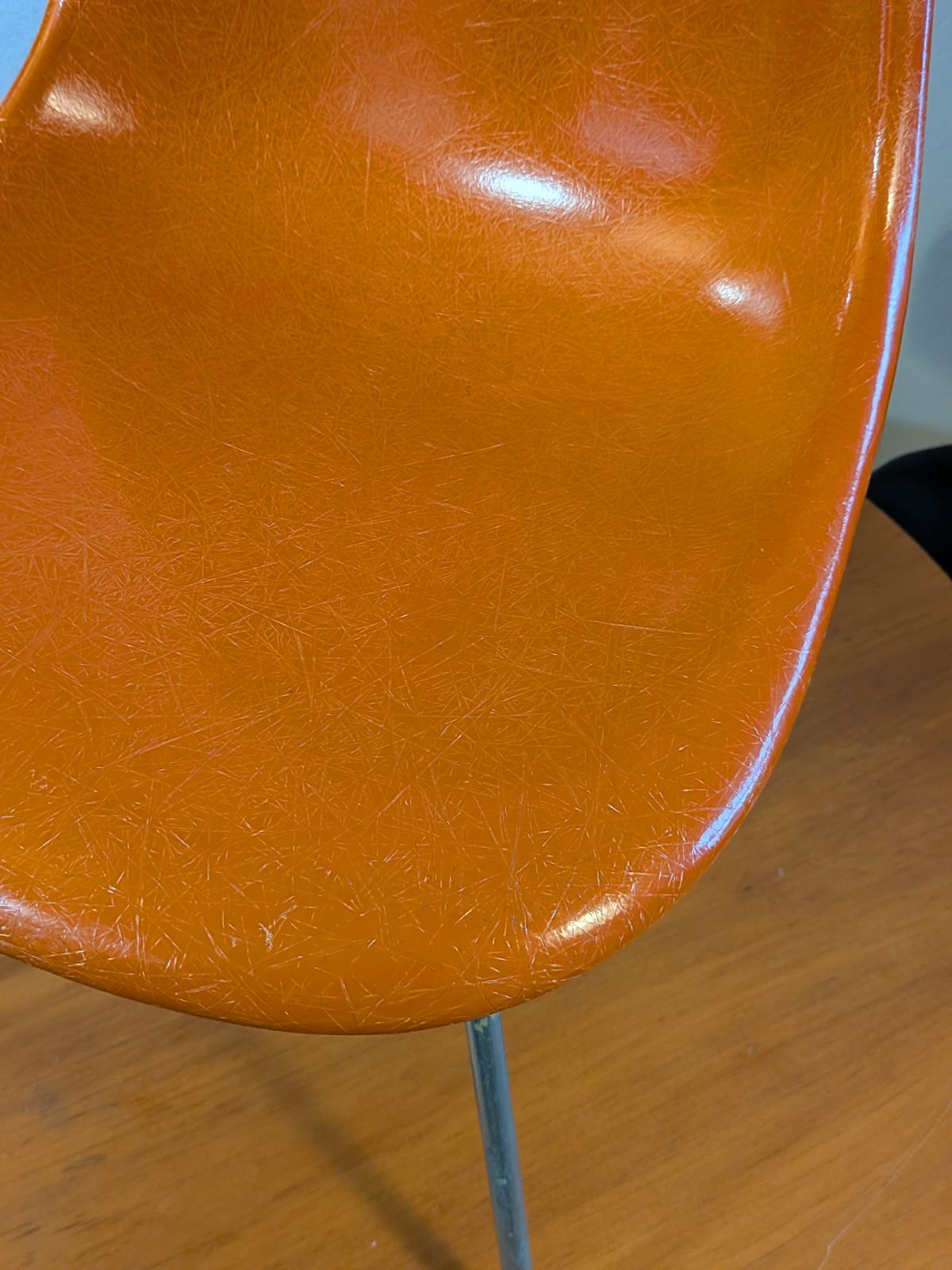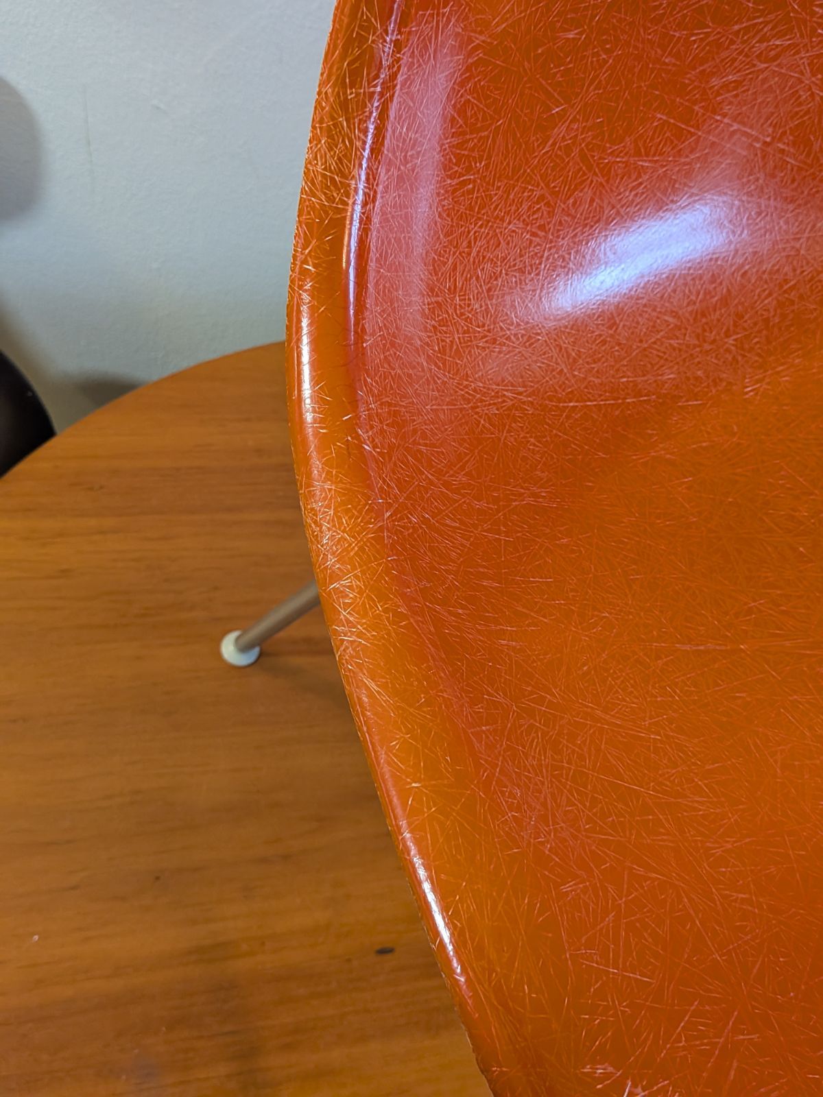ご覧いただきありがとうございます! 少しでも気になる点やご質問がございましたら、お気軽にコメントください。 ※ご購入前に必ず説明を最後までご確認ください。 デザイナーチャールズ&レイイームズ夫妻の代名詞であるシェルチェア。 ミッドセンチュリー家具の定番であり、多くの方に愛されています。 こちらは1960〜1970年代に生産されたテラコッタ色。 ベース(脚)は最もシンプルなHベースです。 珍しいカラーなのでこの機会にぜひご検討ください。 ご自宅用としてはもちろん、美容院やカフェなどお店用としても◎ テラコッタの温かみのある色が空間に彩りを添えてくれます。 座面と足分解して発送にします。 ブランド: Herman Miller / ハーマンミラー【正規品】 デザイナー:チャールズ&レイ イームズ カラー:red orange オレンジ色 素材:FRP、スチール サイズ:単位cm 座面 幅46/ 奥行/55 全体 高さ80/ / 座面の高さ45(床からの高さ)/ 中古品のため、1〜2cmの誤差が出ることがございますがご了承下さい。 商品の状態: ● コンディションランク【C】 全体的に経年による傷や擦れ、ベース(脚)に錆びがございます。 S ×新品、未使用品 A ×未使用に近い B ×目立った傷や汚れなし C ×やや傷や汚れあり D ×傷や汚れあり E ×全体的に状態が悪い ★ご注意ください★ 【こちらの商品は中古品です】 できる限り商品の詳細、状態について説明をしておりますが、 説明しきれない多少のキズ・ヨゴレ・経年劣化・使用感等がございます。 中古品であることへのご理解をお願いいたします。 商品はできる限り現物に近くなるよう、撮影をしておりますが、 ご利用のモニター等環境により、実際の色とは異なって見える場合がございますのでご了承ください。 【返品・キャンセル・返金について】 ○下記の場合状況を確認の上、返品・キャンセル・返金をお受けいたします。 商品到着後7日以内、評価前にご連絡ください。 ・商品説明、写真にない目立つ傷や汚れ、破損がある ・色、サイズ、数量が商品説明・注文内容と異なる ・ご注文いただいたものとは全く違う商品が届いた この場合、返送及び再送の送料等は当店が負担いたします。 また配送中の傷、破損等についてはまず当店にご相談ください。 ○下記の場合には返品等はお受けできません。 ・お客様のもとで傷、汚れ、損傷が生じた商品 ○お客様のご都合による返品の場合、商品到着後7日以内のみお受けいたします。 この場合、返品の送料はお客様負担となります。 お忙しい中最後までご確認いただきありがとうございました!