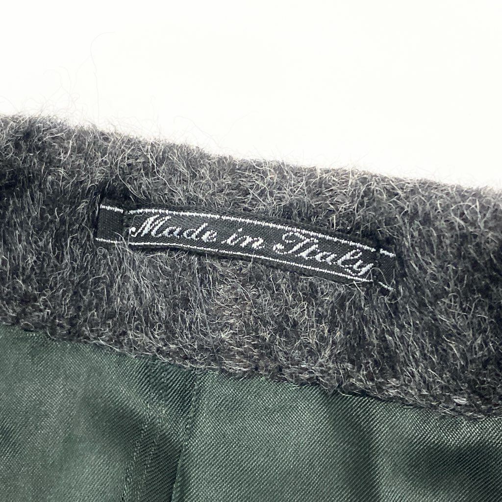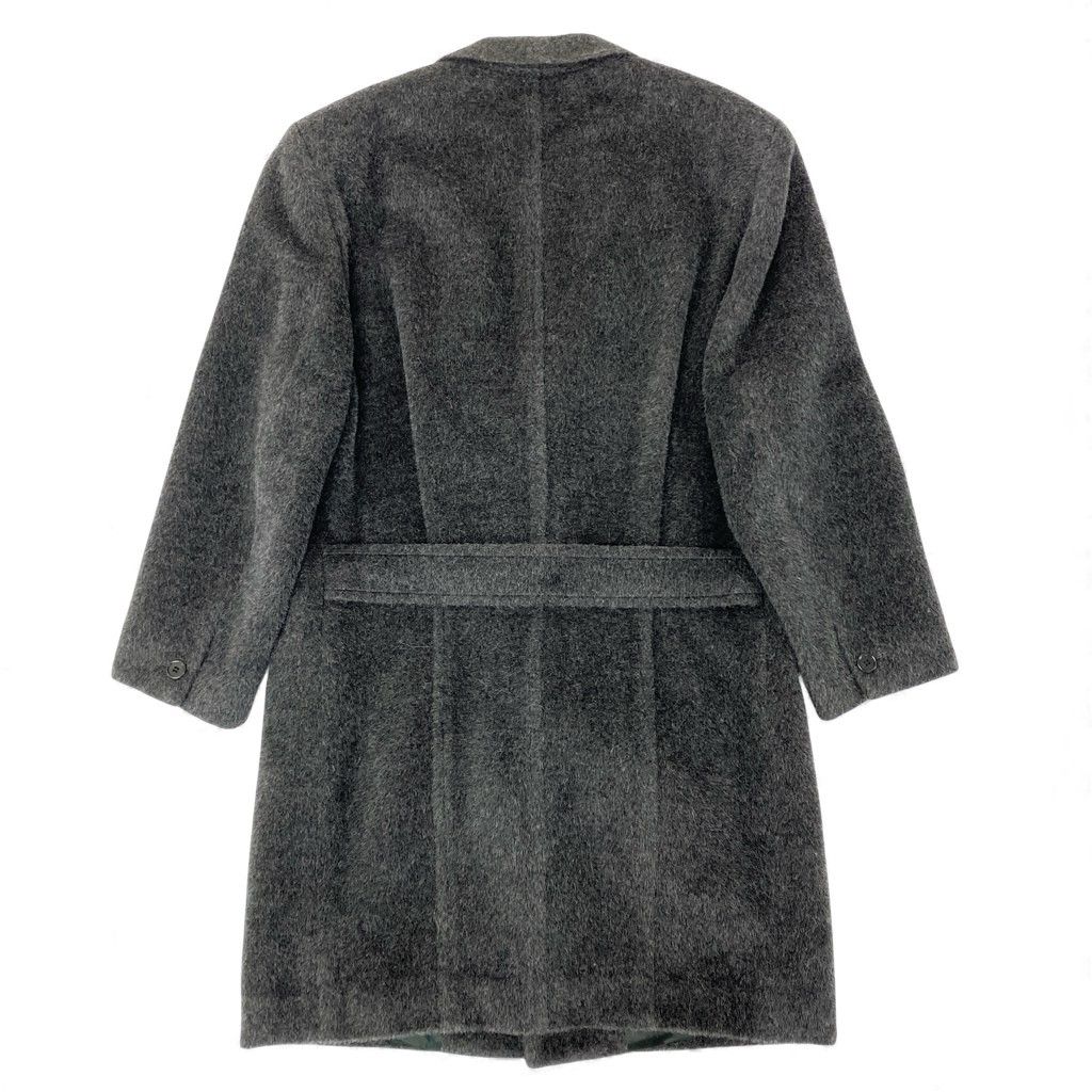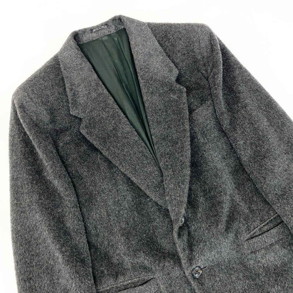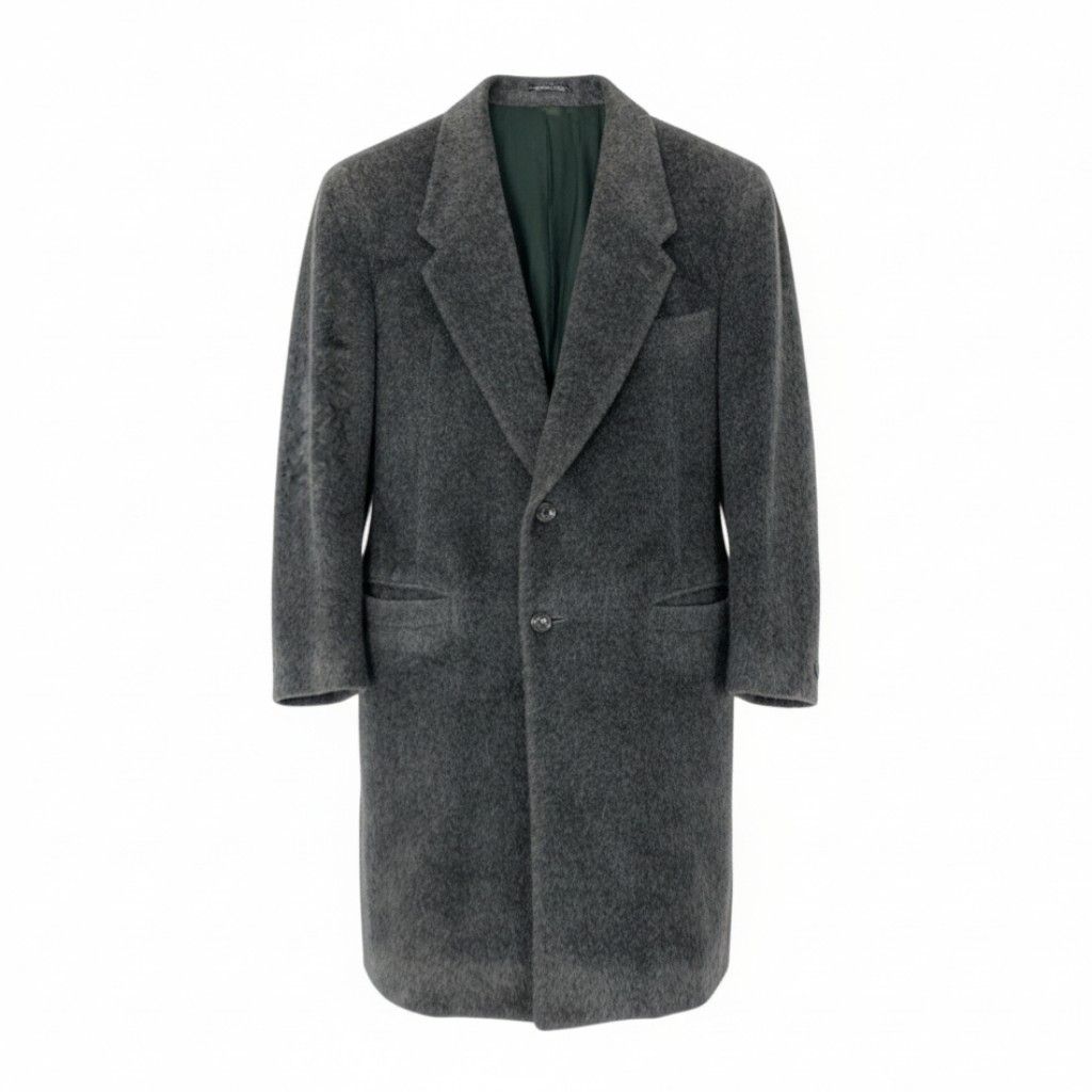Gianni Versaceらしい存在感を放つ、アルパカ混素材のチェスターコートです。カラーはダークチャコールグレー系で、無地ながら奥行きのあるメランジ調の表情が上品さを演出します。毛足を感じるウール×アルパカのマットな質感で、見た目にも暖かみのある仕上がりです。大きめラペルとシンプルなボタンデザインがクラシックかつモードな印象を与え、きれいめからマニッシュなスタイルまで幅広く活躍します。