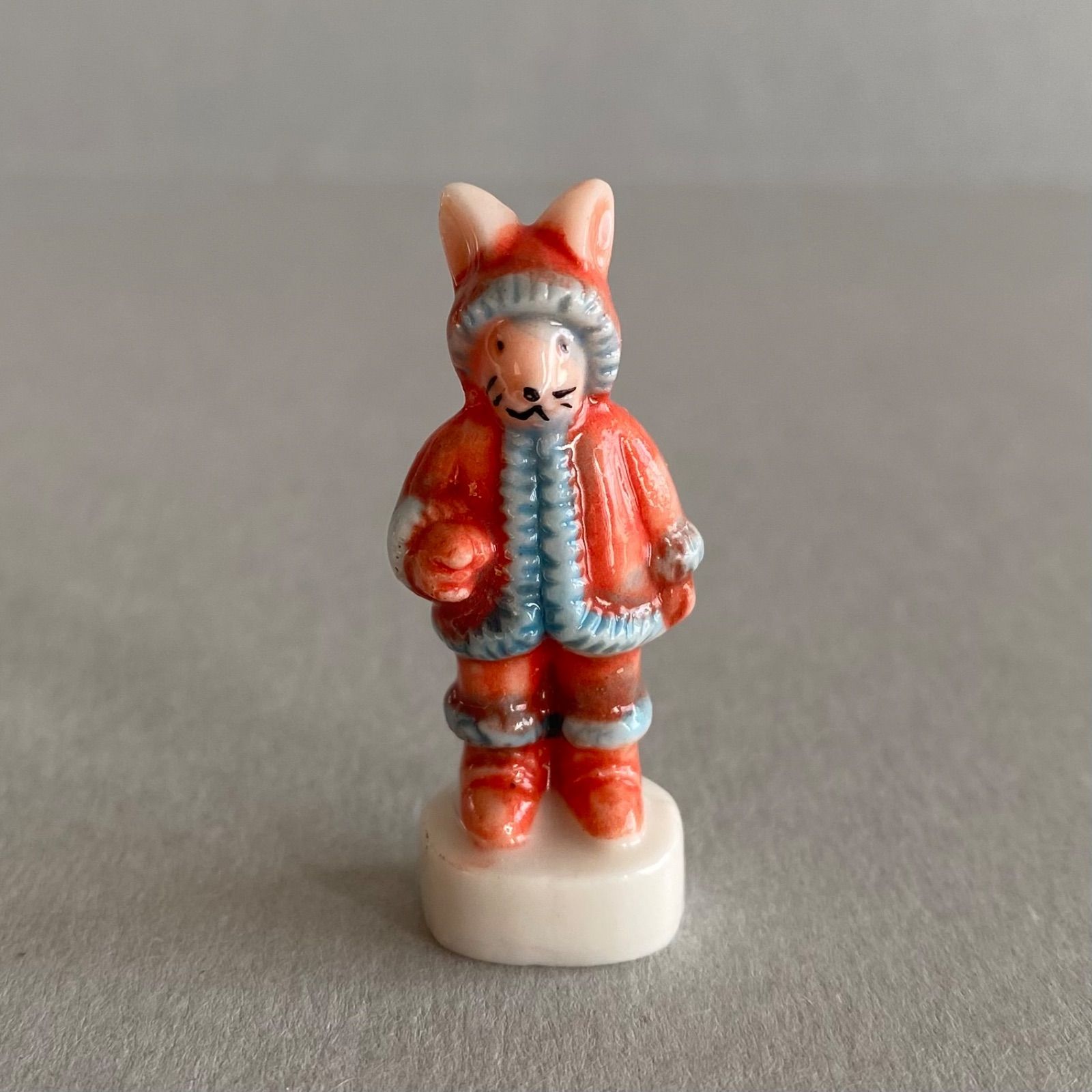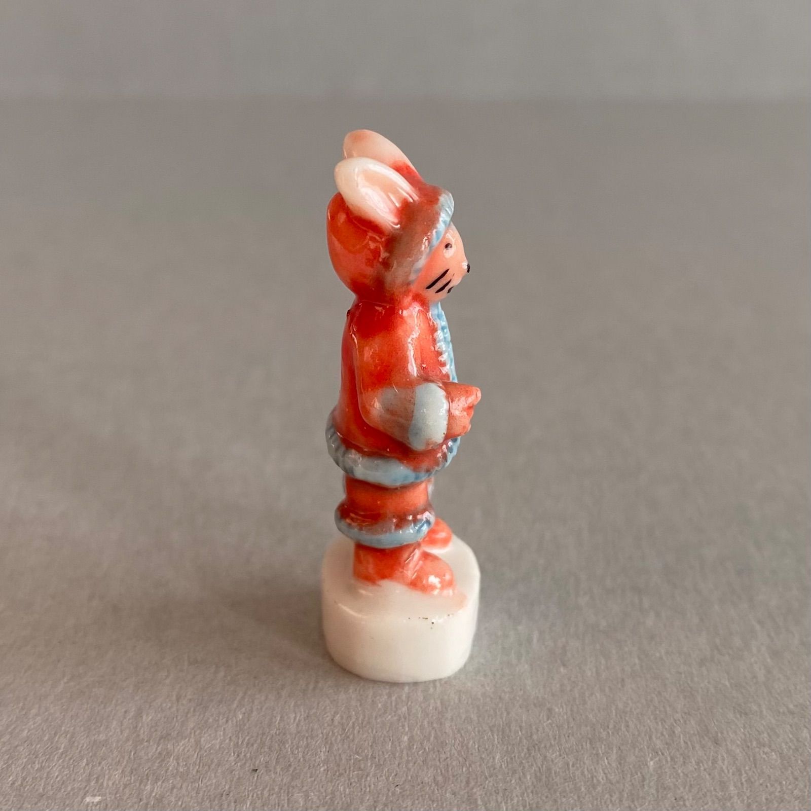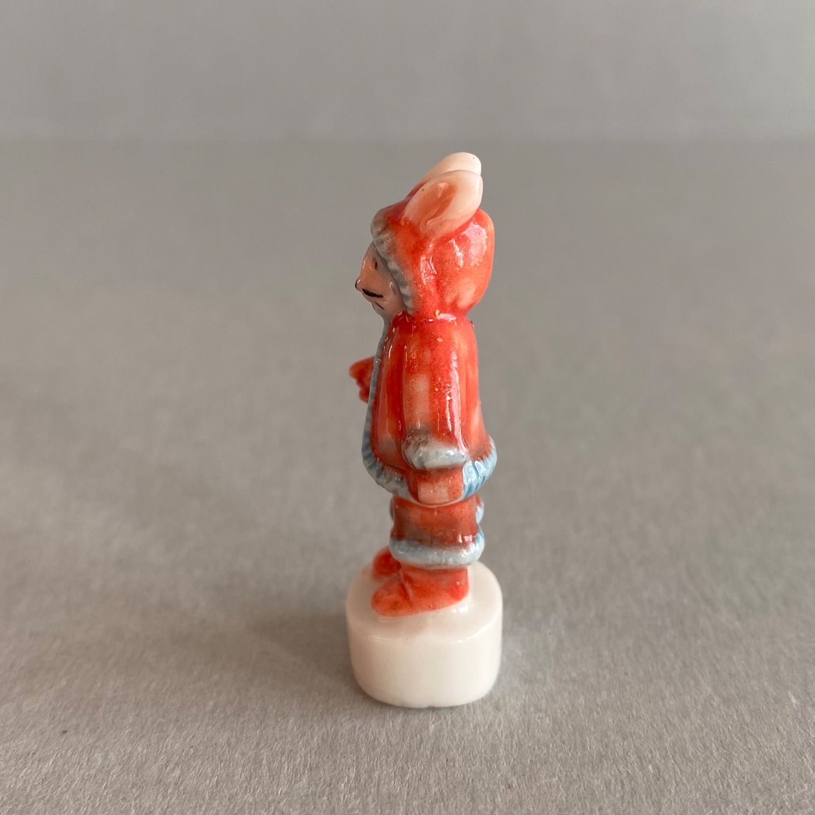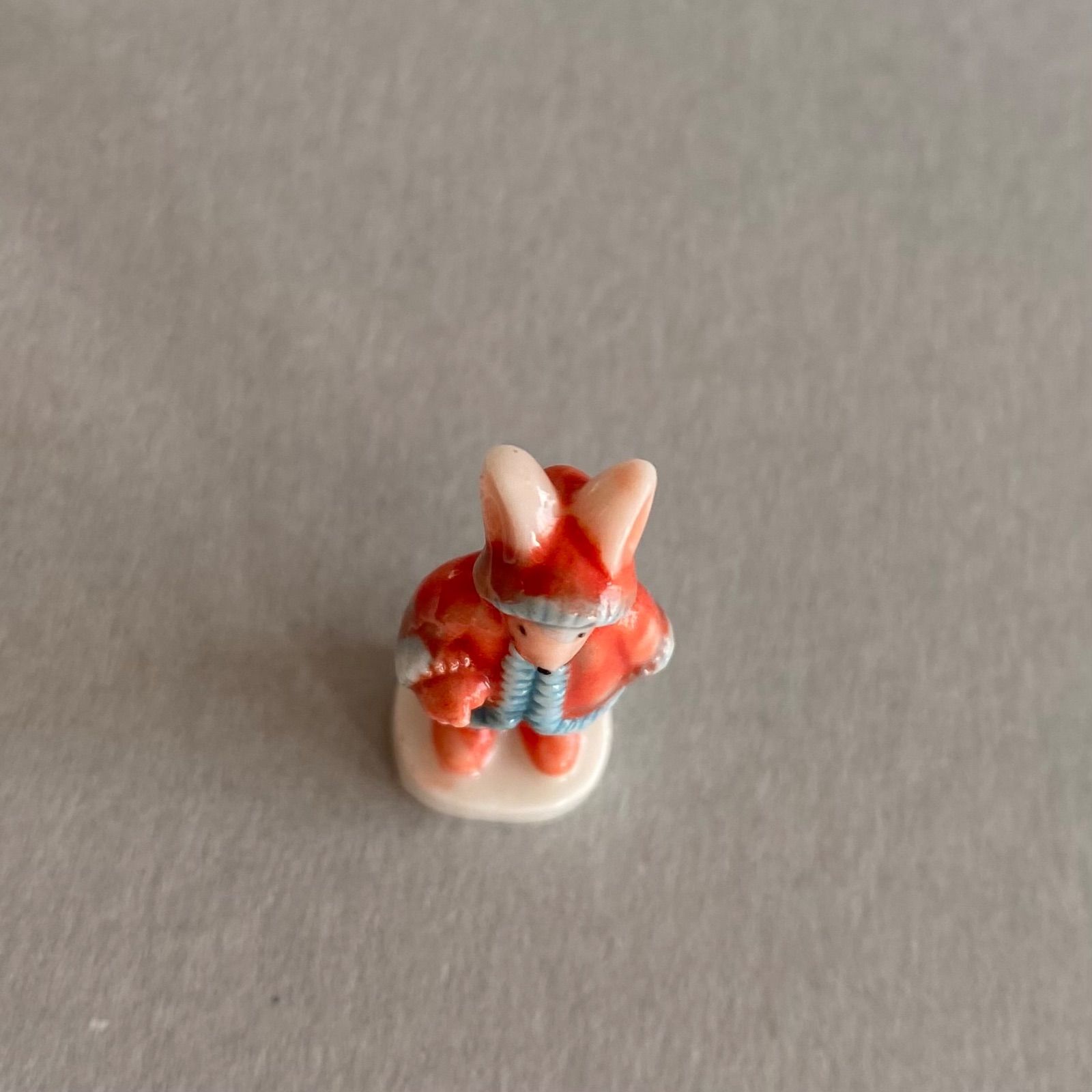 冬支度のうさぎのフェーブ/フランス雑貨/陶器ミニチュア/ブロカント/ヴィンテージ/蚤の市/幸運の小さな陶器