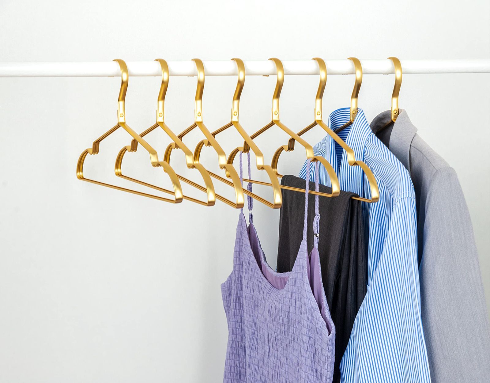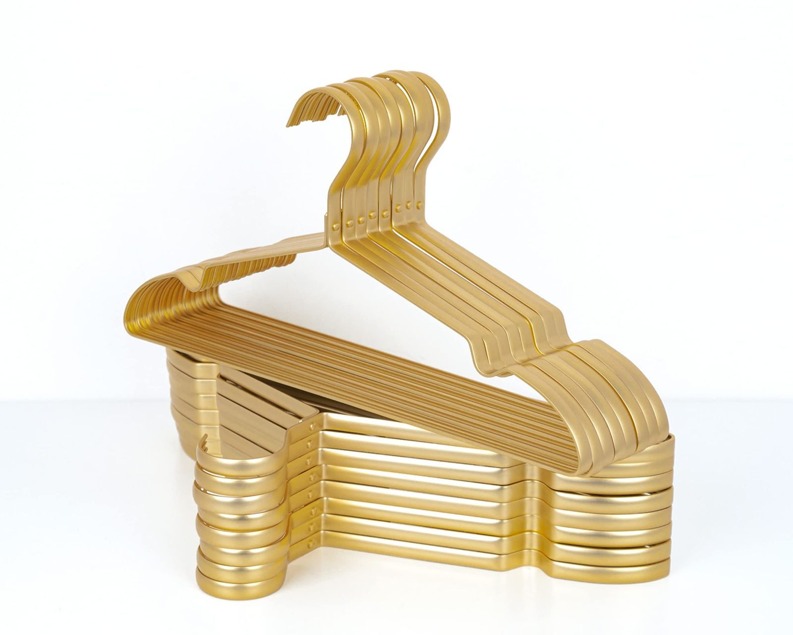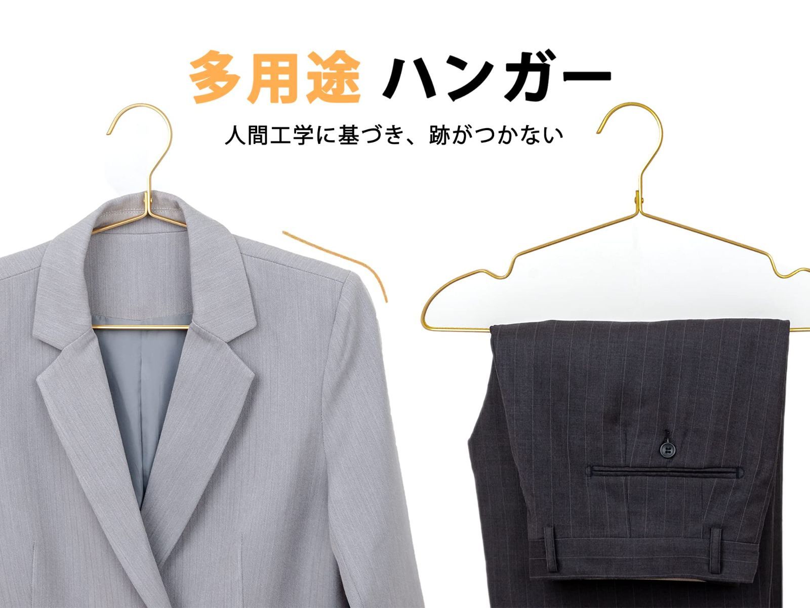 【新着商品】ゴールドハンガー クローゼット 収納 アルミニウム製 衣類 洋服 スーツ Tシャツ 超軽いアルミハンガー ジャケット コート ドレス ボトム Home エレガント 頑丈 耐用 カビにくい Amber 曲がらない 滑らない 型崩れ防止
