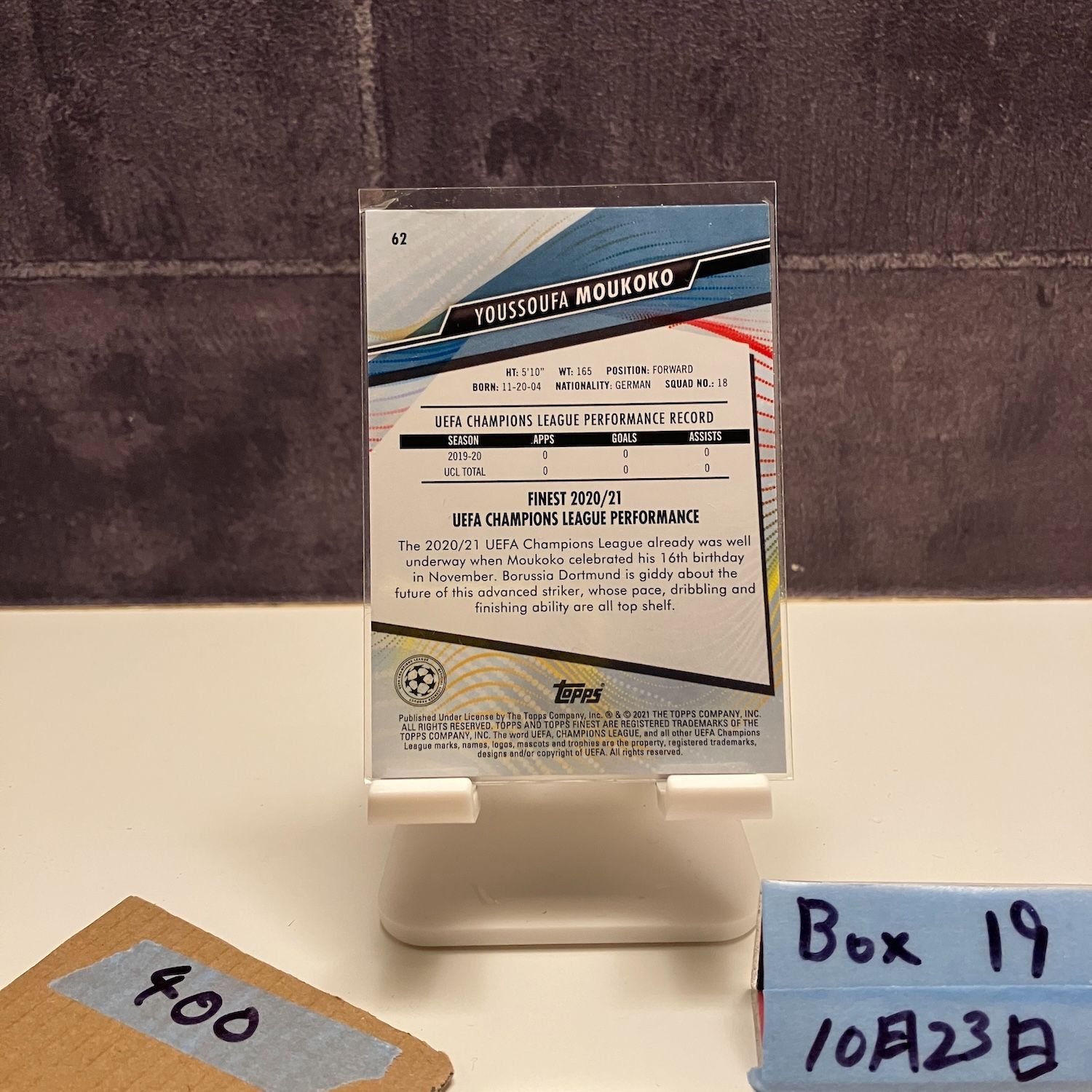 2020-21 Topps Finest Youssoufa Moukoko Borussia Dortmund UEFA Champions League RC ルーキー Rookie