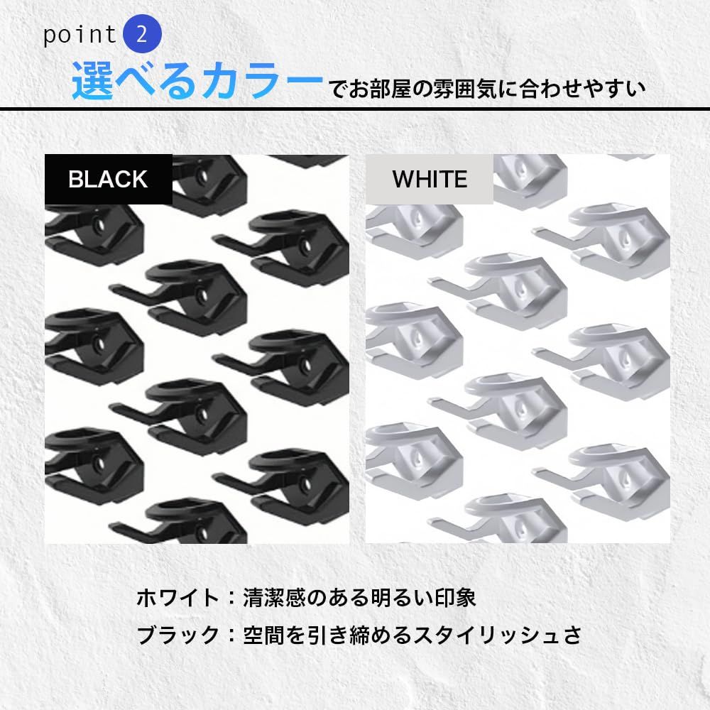 壁面を活用して帽子を省スペースで整理できる吊り下げ式帽子掛けです。フック部分に帽子を掛けるだけで収納が完了し、棚やクローゼット内の圧迫を防ぎながらスマートに管理できます。玄関・寝室・クローゼットなど場所を選ばず使用でき、ディスプレイとしても役立つ形状です。1セットで帽子10個を収納可能なホルダースタイル。キャップやハットを一列に吊るせるため、所有数が多い方や家族全員分の収納にも適しており、視認性が高く選びやすさも向上します。ショップの展示什器としても使える構成です。帽子の掛け方は2通り対応。つばを前向きに固定する挟み込み方式と、ベルト部に引っ掛ける吊り下げ方式の両方に対応する設計のため、キャップ・バケットハット・つば広帽等さまざまな帽子型に合わせて使い分けが可能です。ホルダーの両腕部分はアクセサリーや日用品にも応用可能。鍵・ネックレス・ゴム・ケーブルなどを一緒に掛けられるため、帽子と小物類を同じ場所でまとめて整理でき、玄関周りやクローゼットの収納効率を高めます。素材には硬めの樹脂を採用し、軽量ながらしっかり保持できる強度を確保。帽子の型崩れを抑えながら吊り下げられる構造で、日常的な収納だけでなく展示用途にも使用しやすい形状となっています。設置方法は粘着テープとネジ留めの2方式に対応。穴を開けたくない壁にはテープ施工、より保持力を高めたい場合はネジ施工と、設置場所や用途に応じて選択できる実用的なセット内容です。テープ施工は平滑な面(木材・ガラス・タイル・金属・プラスチック・大理石)に適しており、表面が滑らかなほど密着性が高くなります。貼り付けの前に油分やホコリを拭き取ることでより固定力が維持できます。軽量設計のため移動や模様替えが容易。使用しない時はホルダーを重ねて省スペースに収納でき、引越し・店舗移動・レイアウト変更が多い環境でも扱いやすい仕様です。シンプルな外観は帽子を主役に引き立てるため、収納と同時に見せるディスプレイとして活躍。自宅でのインテリア演出だけでなく、アパレル店やマーケット出展などの陳列にも向いています。カラー展開があり、部屋の雰囲気や設備に合わせた統一感のある見た目で設置できます。壁面の外観を損ないにくく、衣類収納・玄関・子供部屋・ウォークインクローゼットなど幅広い場所に馴染むデザイン性です。