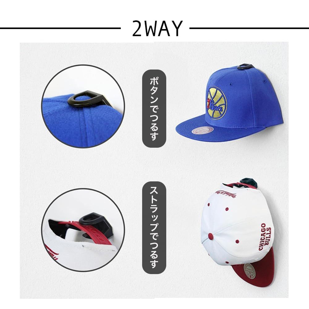 帽子を掛ける方式は2種類に対応しており、つばの形や帽子の種類に合わせて選べるのが特徴です。挟み込み方式ではキャップやベースボール帽を前向きに見せるディスプレイにも向き、吊り下げ方式ではつば広帽や柔らかい素材の帽子も掛けやすく、収納の幅が広がります。
