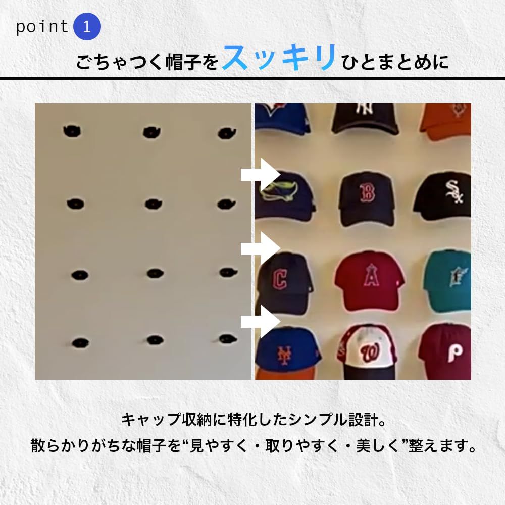 スペースを効率的に使える壁掛け収納で、帽子を快適に整理したい方、複数の帽子を愛用している方、整った展示や見せる収納を行いたい方に適した製品です。