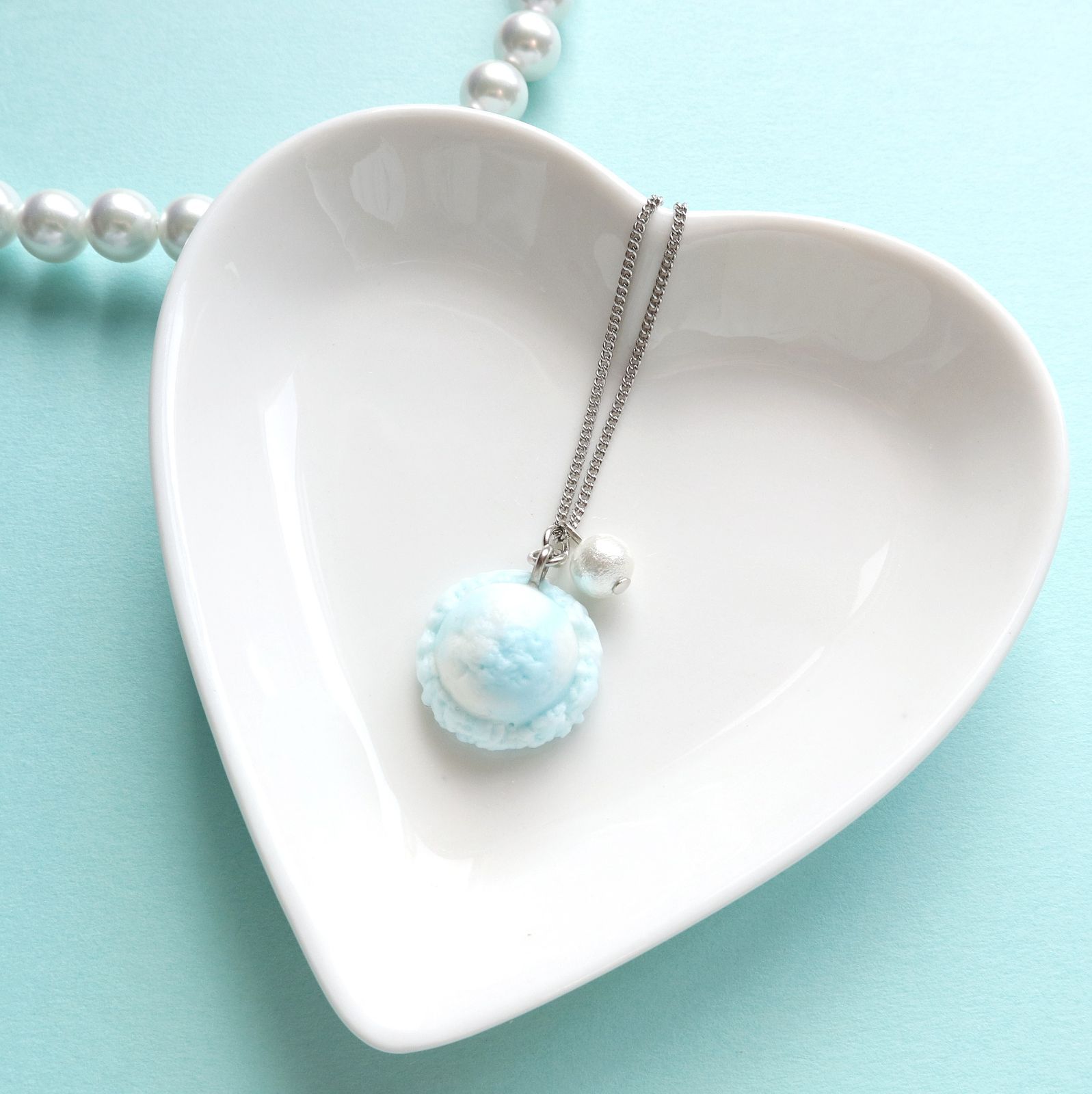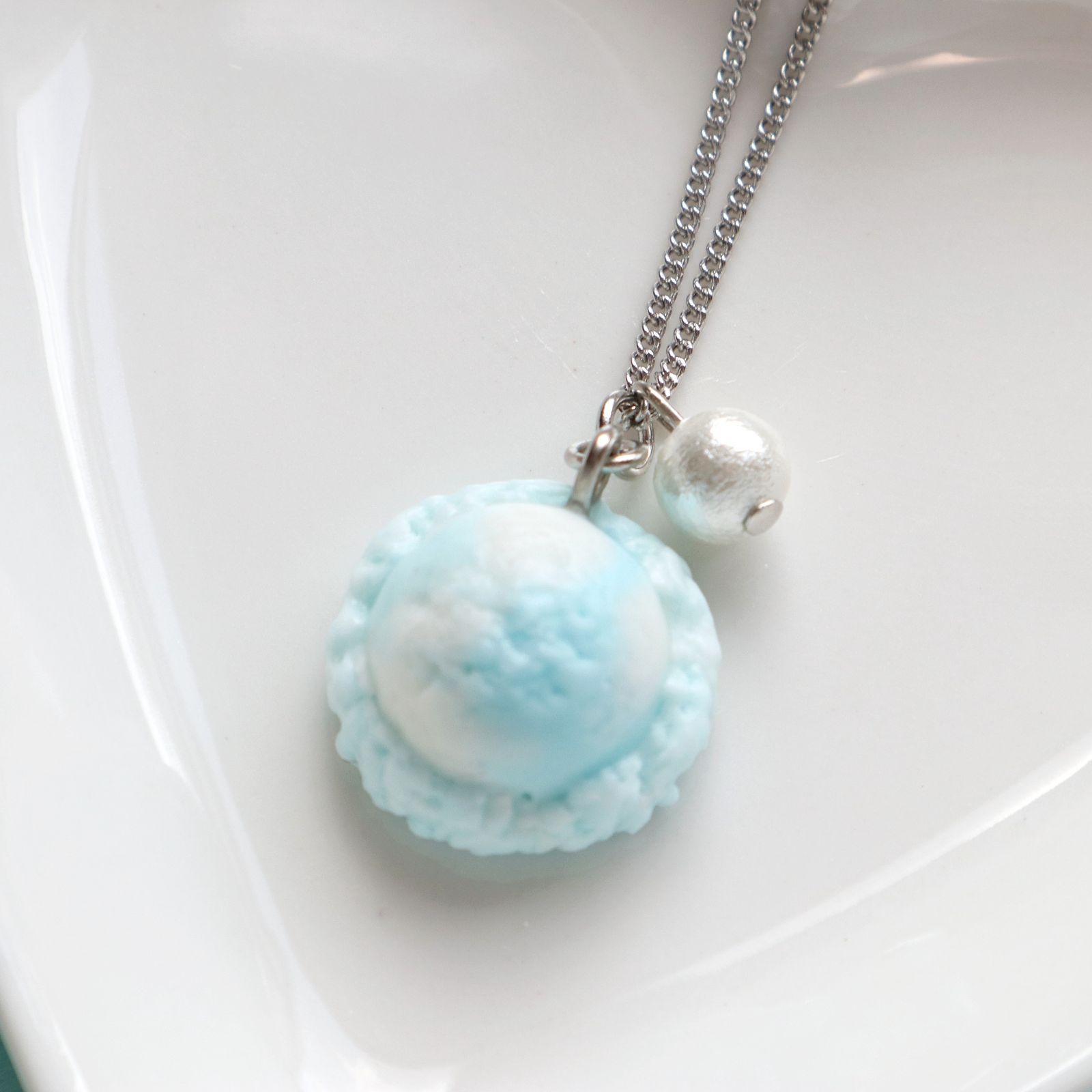 アイスクリームとコットンパールのネックレス*空色クリームソーダ