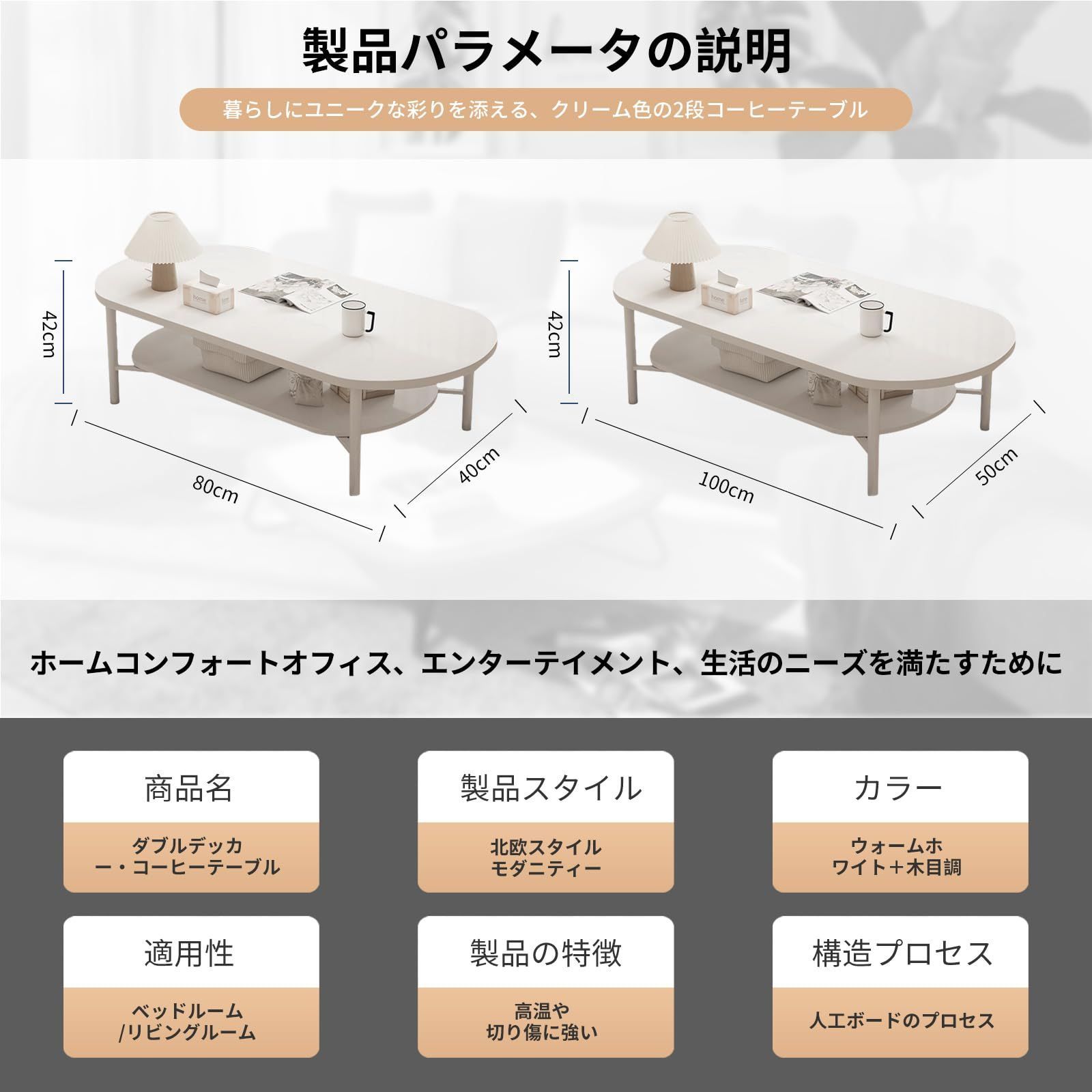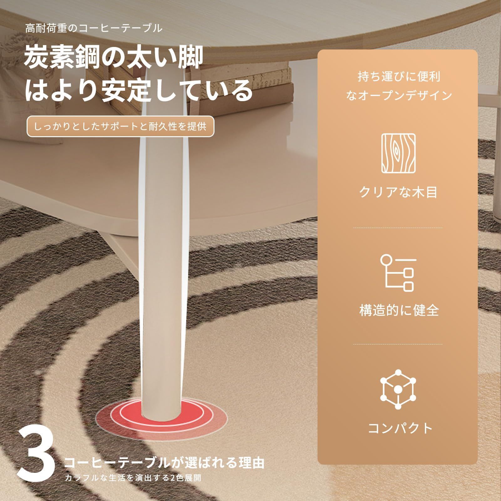 一人暮らし 省スペース 組立簡単 収納棚付き ミニテーブル センターテーブル リビングテーブル 幅80×奥行40×高さ42cm 収納付き ローテーブル